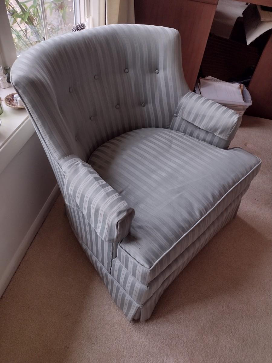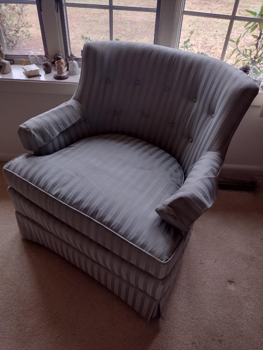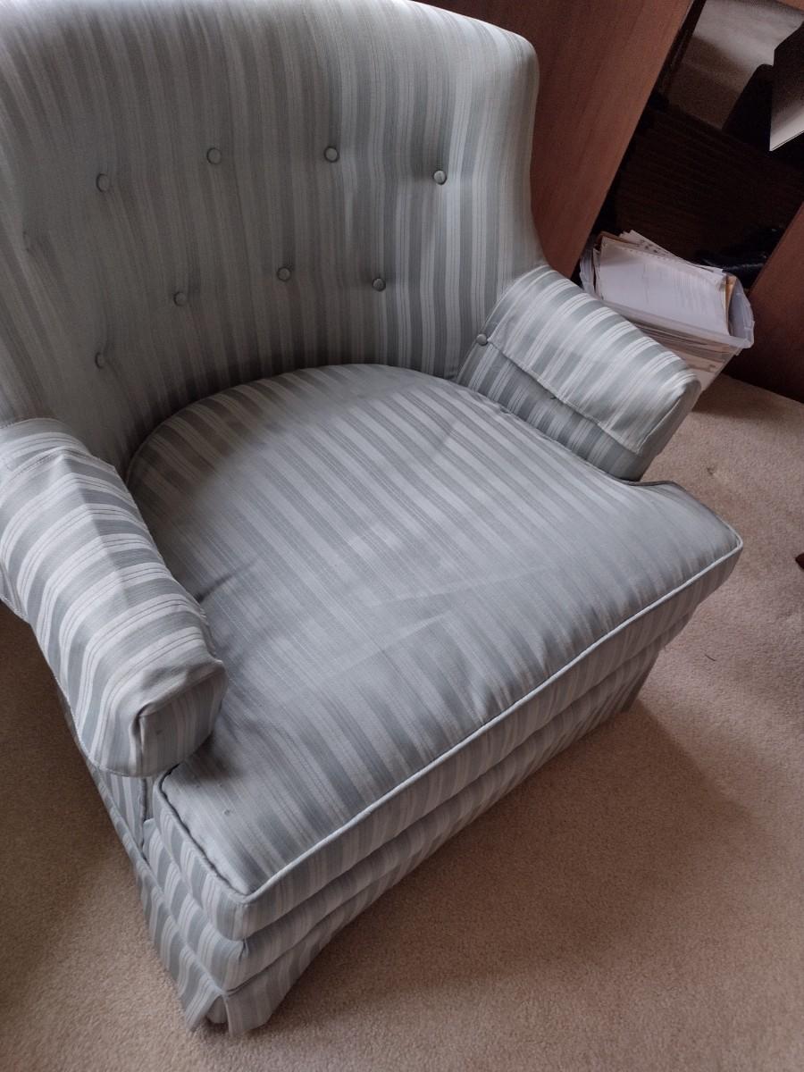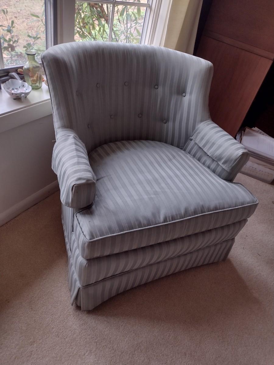 Pair of Matching Sage Upholstered Parlor Chairs. Lighting washed out the color in pictures. Chairs are sage.