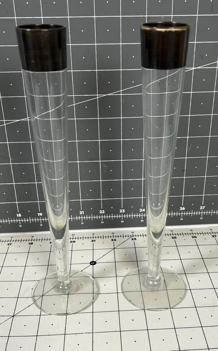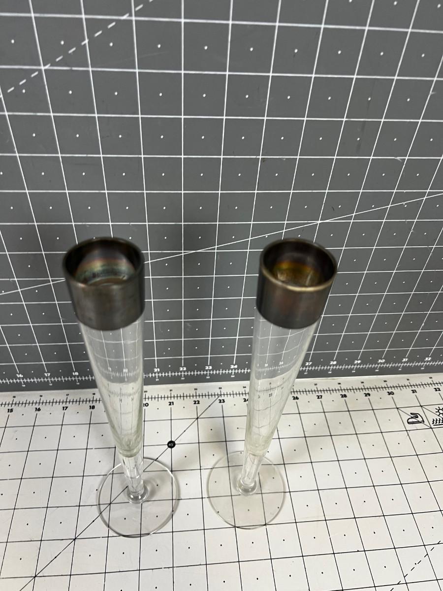 Pair of Matching Silver Rimmed Fluted Bud Vases