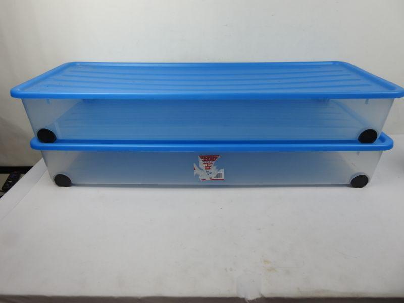 Pair of Matching Underbed Storage Bins, Clear/Blue