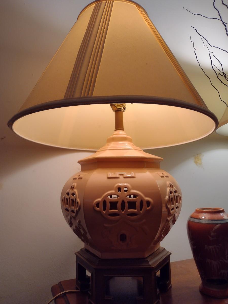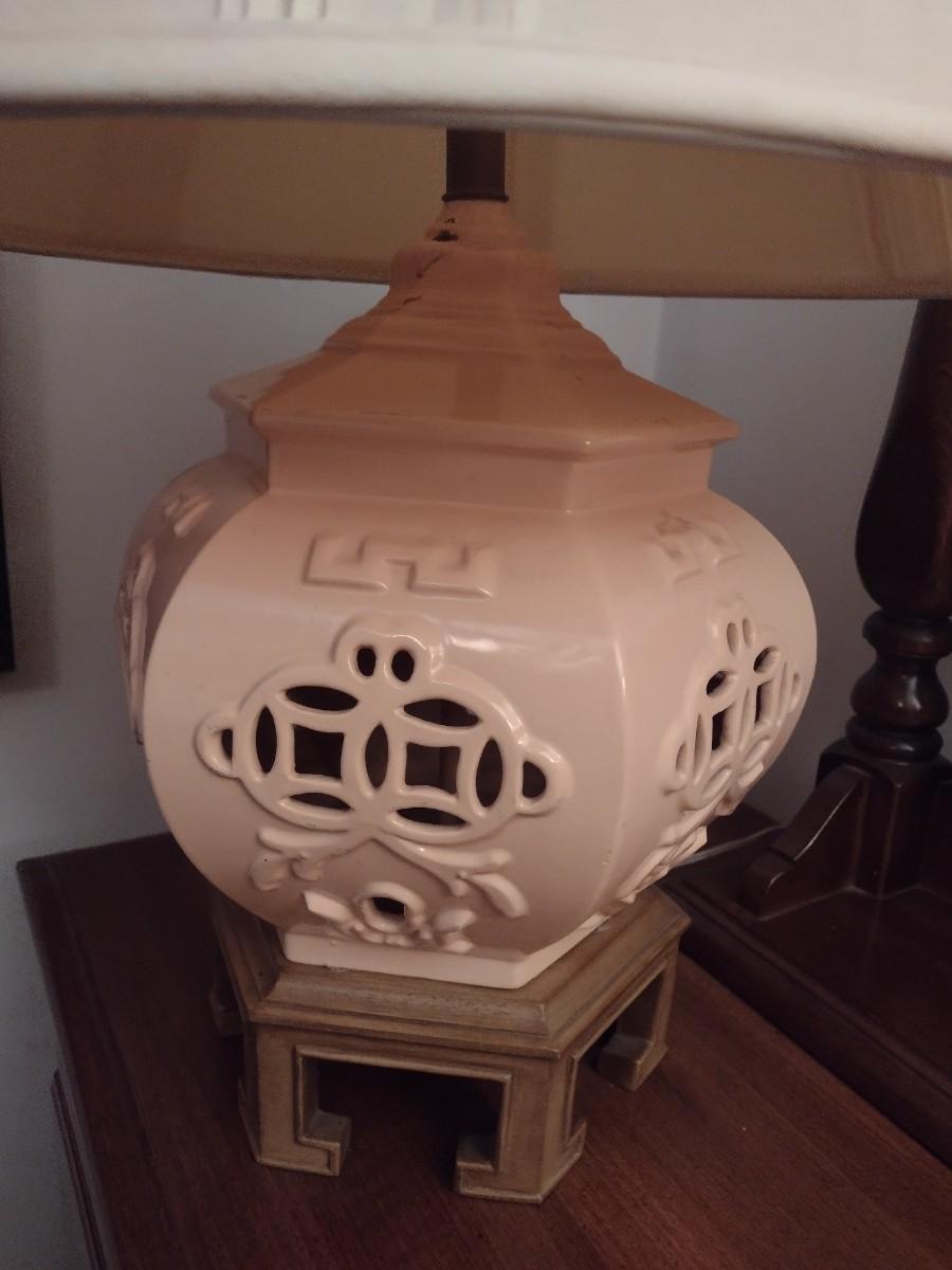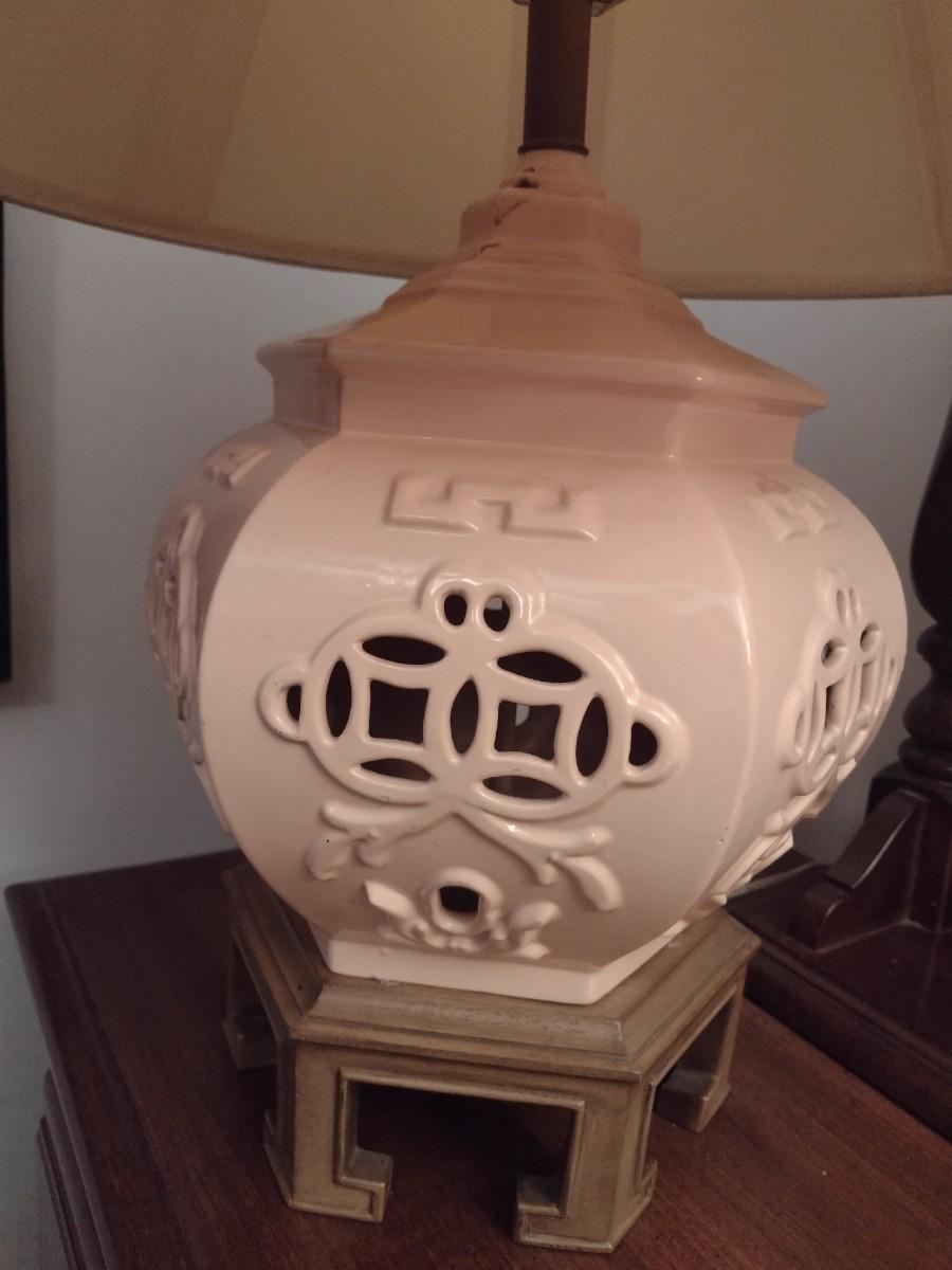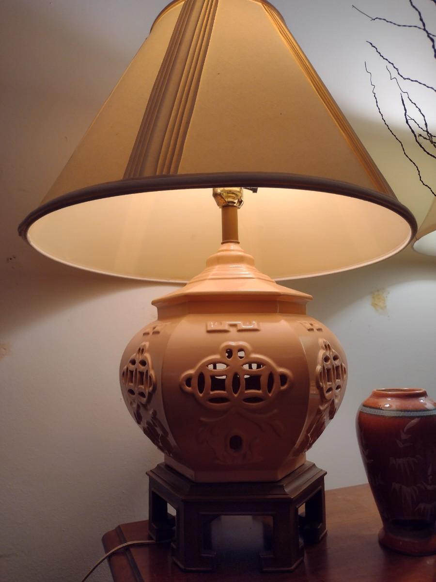Pair of MCM Design Matching Ceramic Temple Shape Table Lamps