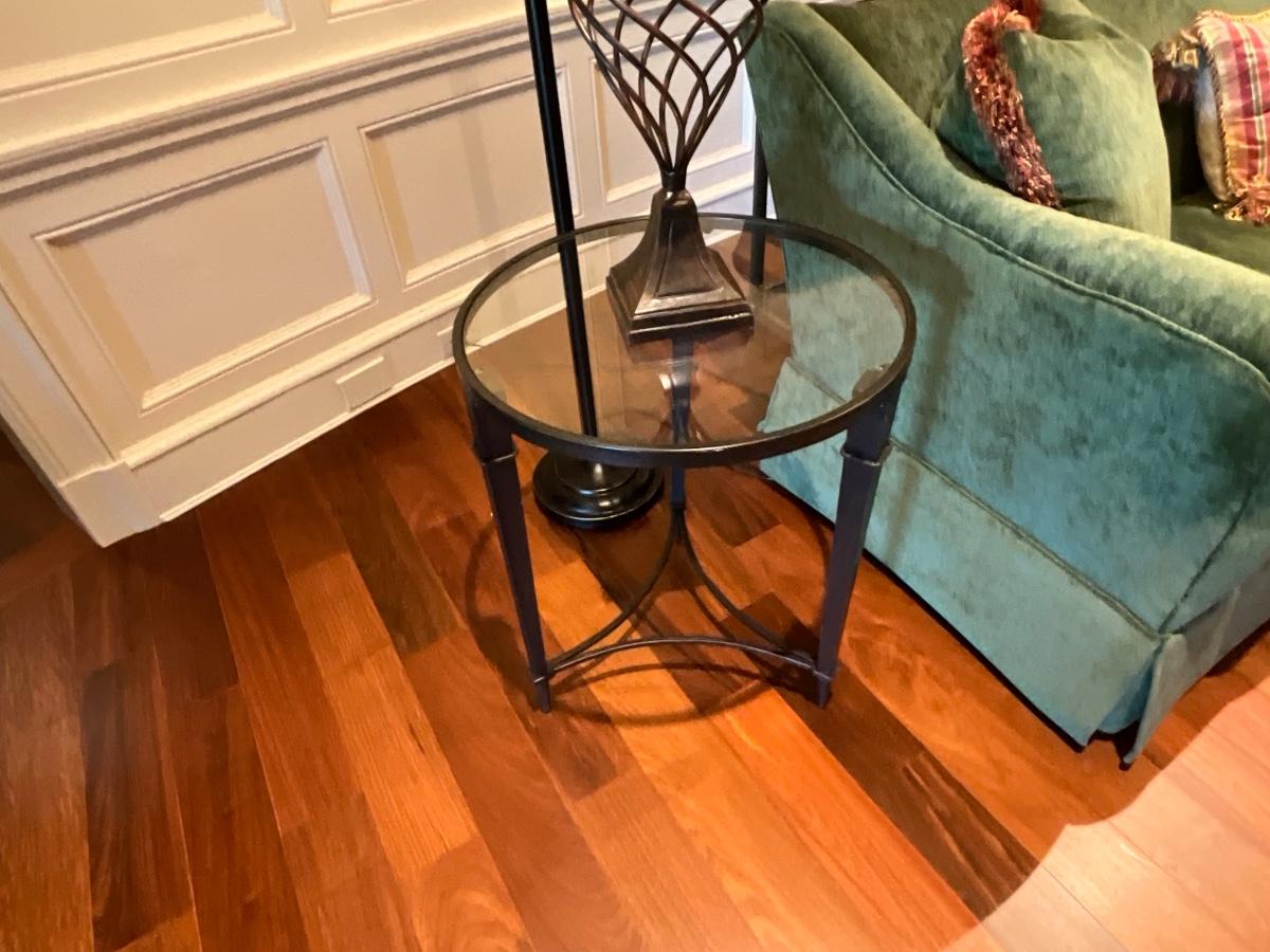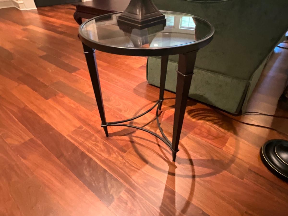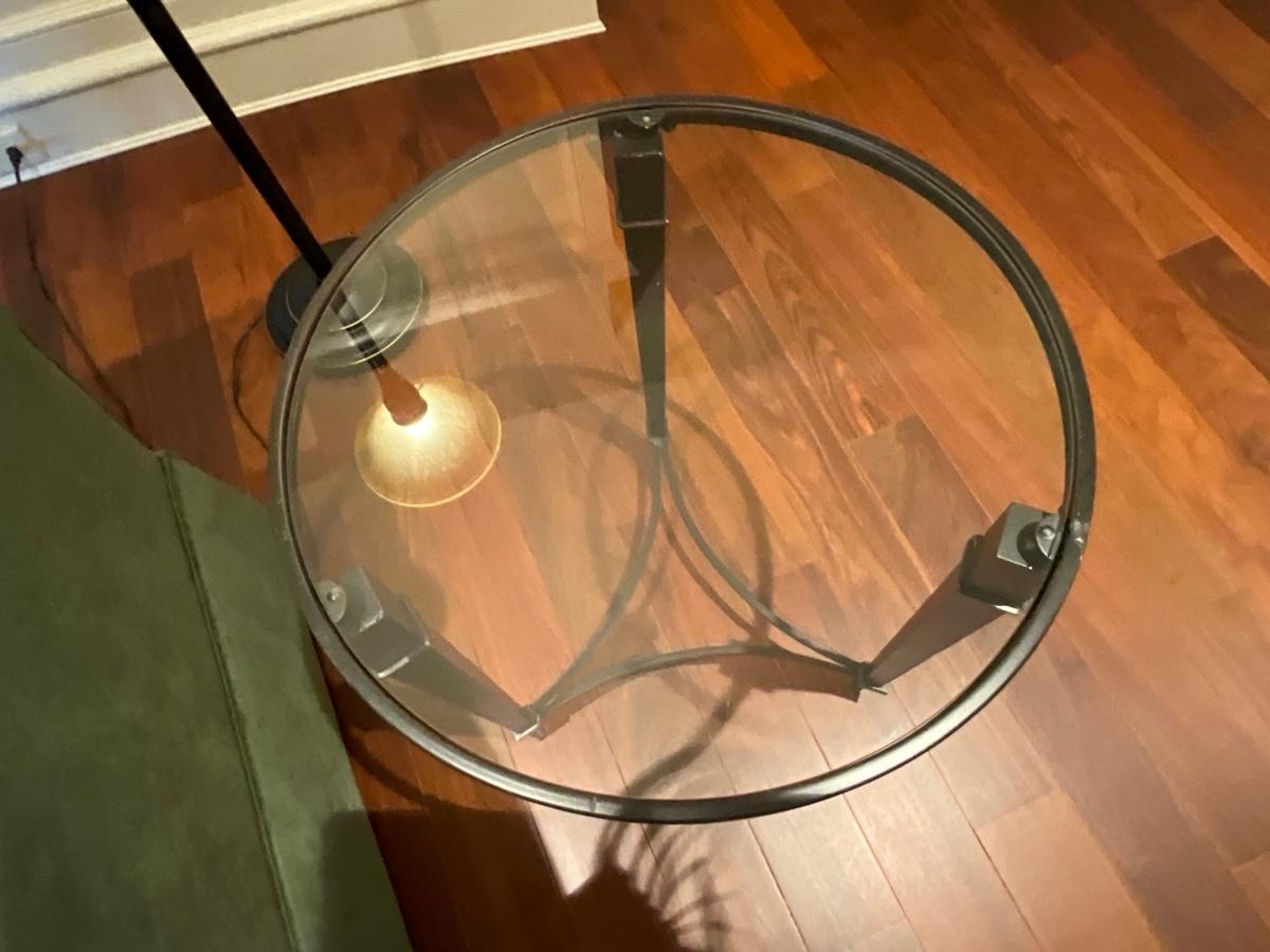 Metal glass side table are 26.5 inches tall 21.5 inches round