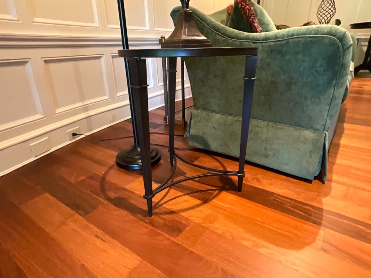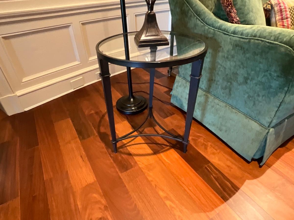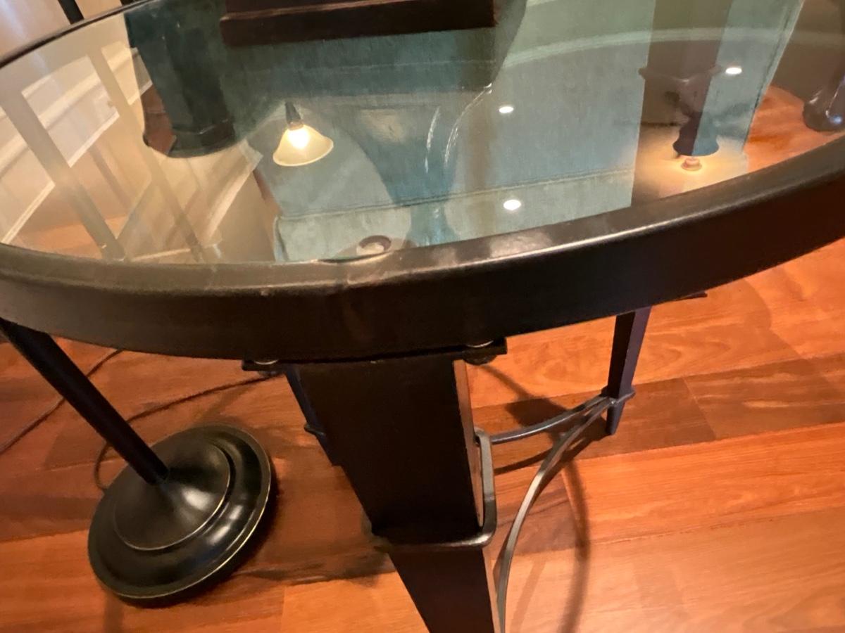 Metal glass side table are 26.5 inches tall 21.5 inches round