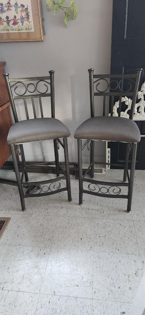 Pair of metal bars stool in great shape. One has a bit of staining in the seat but not super noticable.