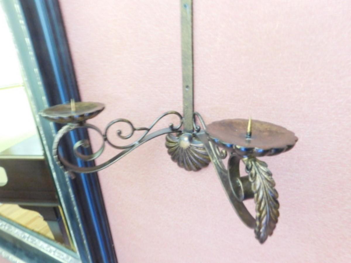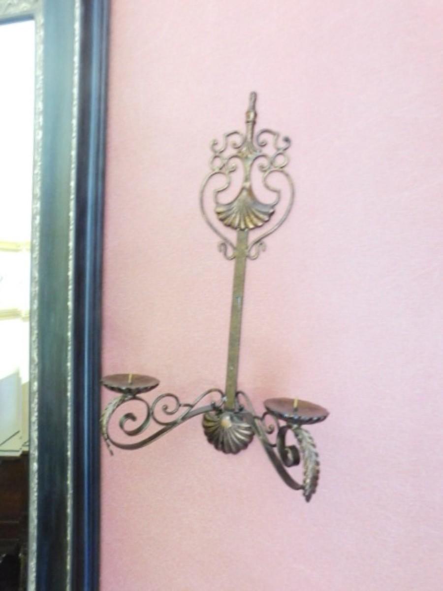 Pair of Metal Cast Double Arm Candle Wall Sconces