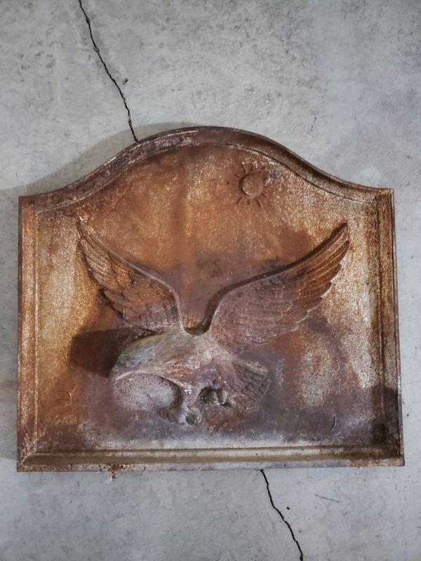 These iron panels are supposed to go in the back of the fire place to radiate heat. There are two of them with some ware.