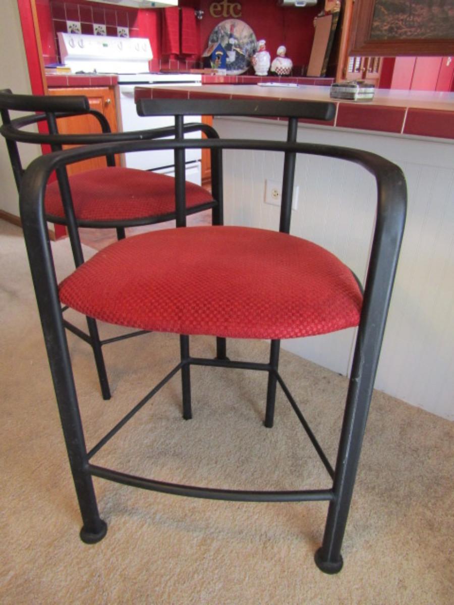 Pair of Metal Frame Bar Stools with Upholstered Seats
