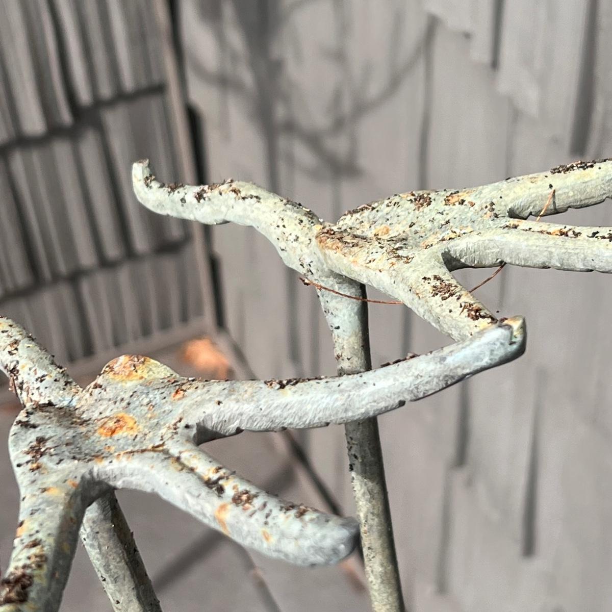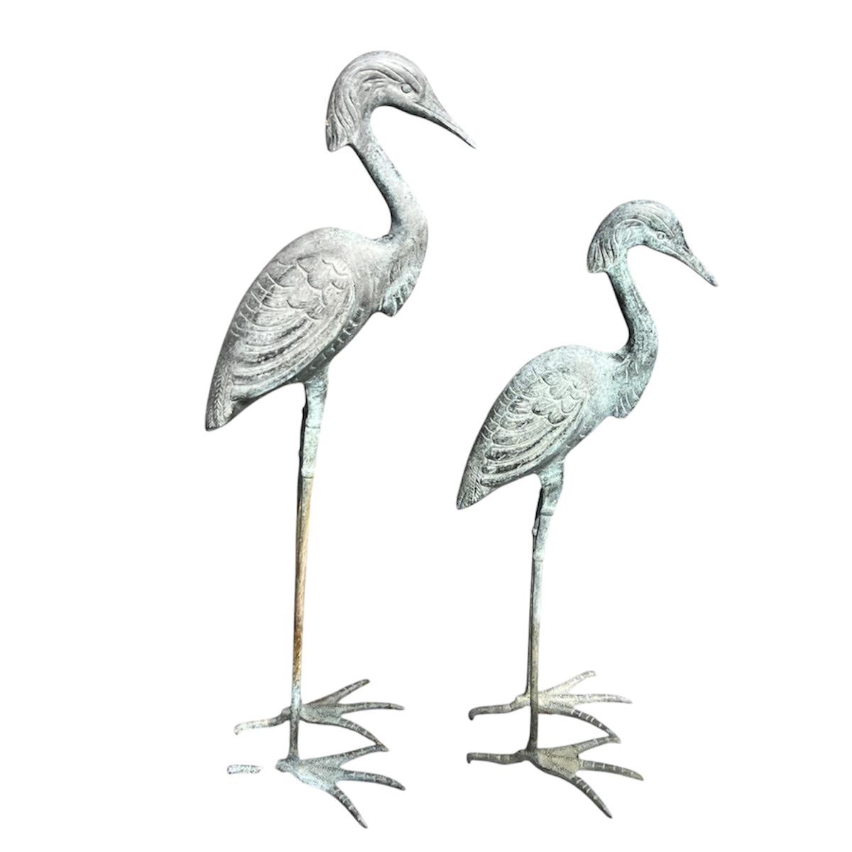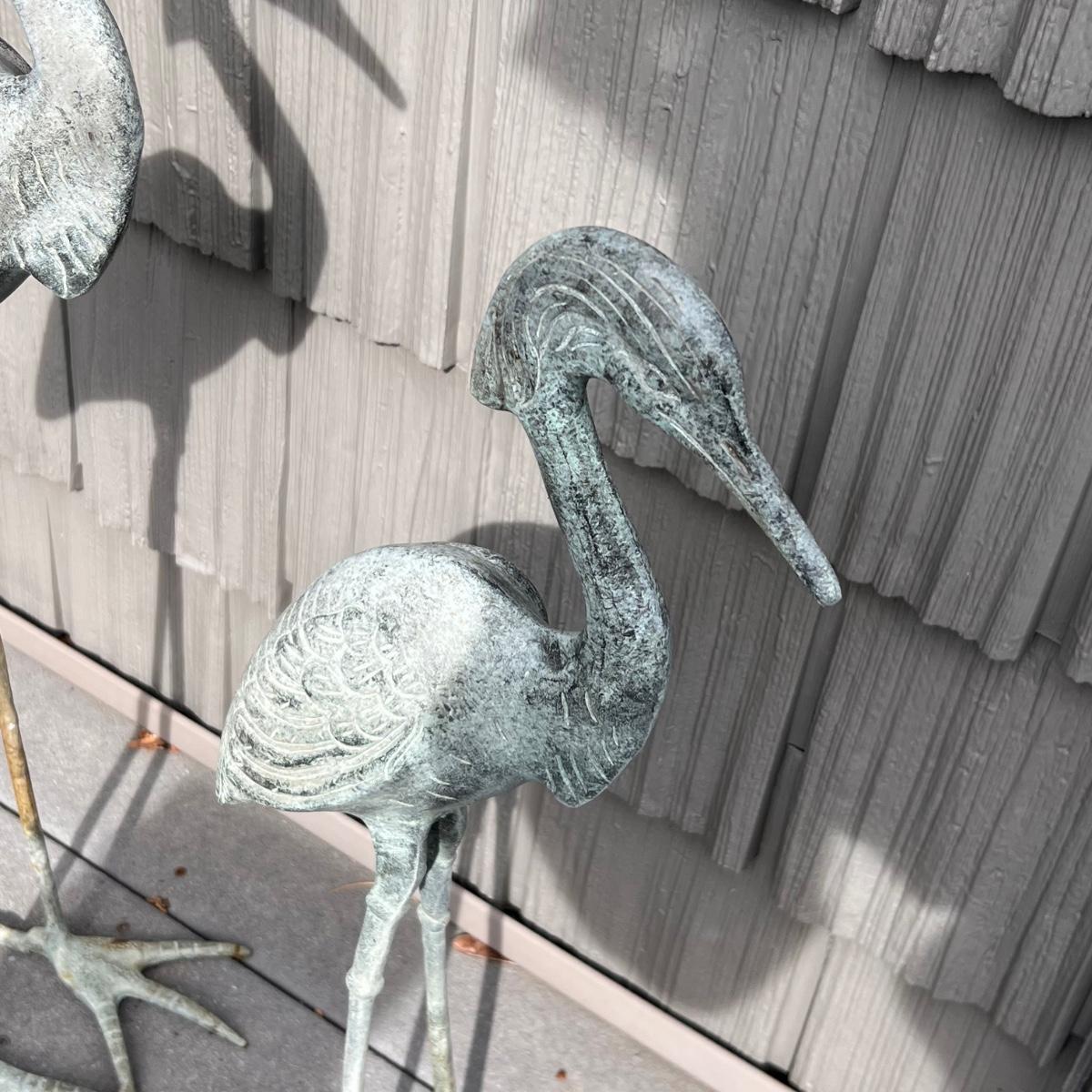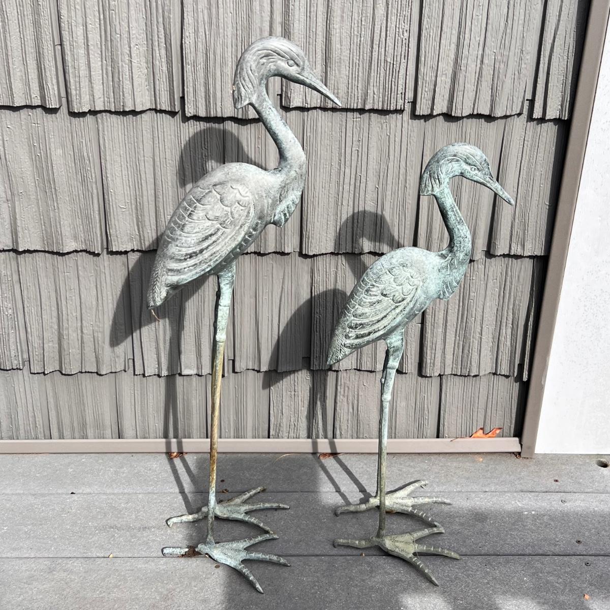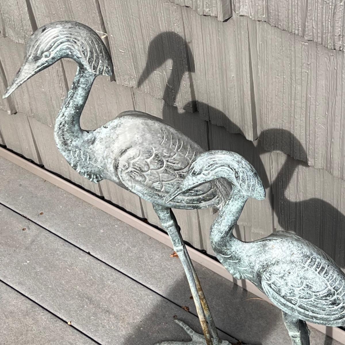 This peaceful pair of herons are metal with a beautiful blue patina.