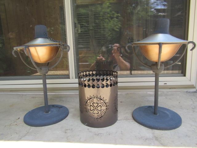 Pair of Metal Oil Lamps with Additional Wicks and Tea Light Holder