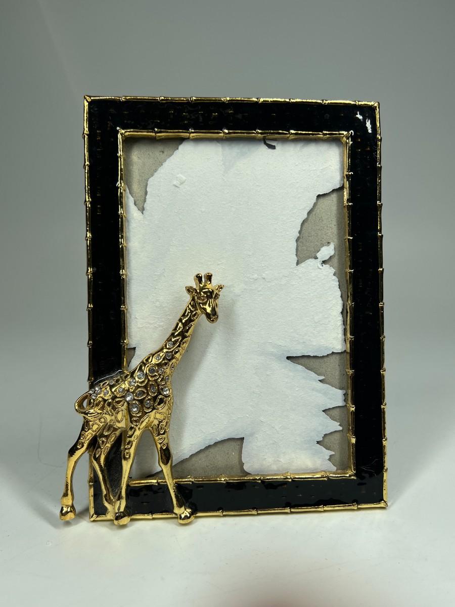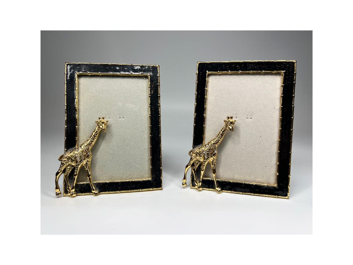 Pair of Metal Rhinestone Giraffe Displayable Home Decor Photo Frames