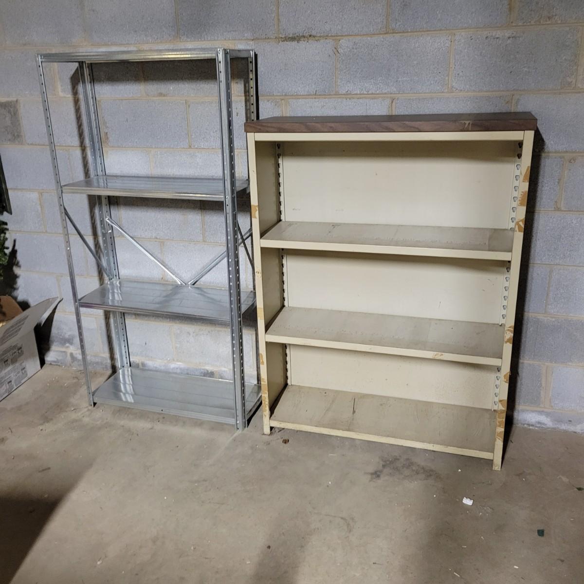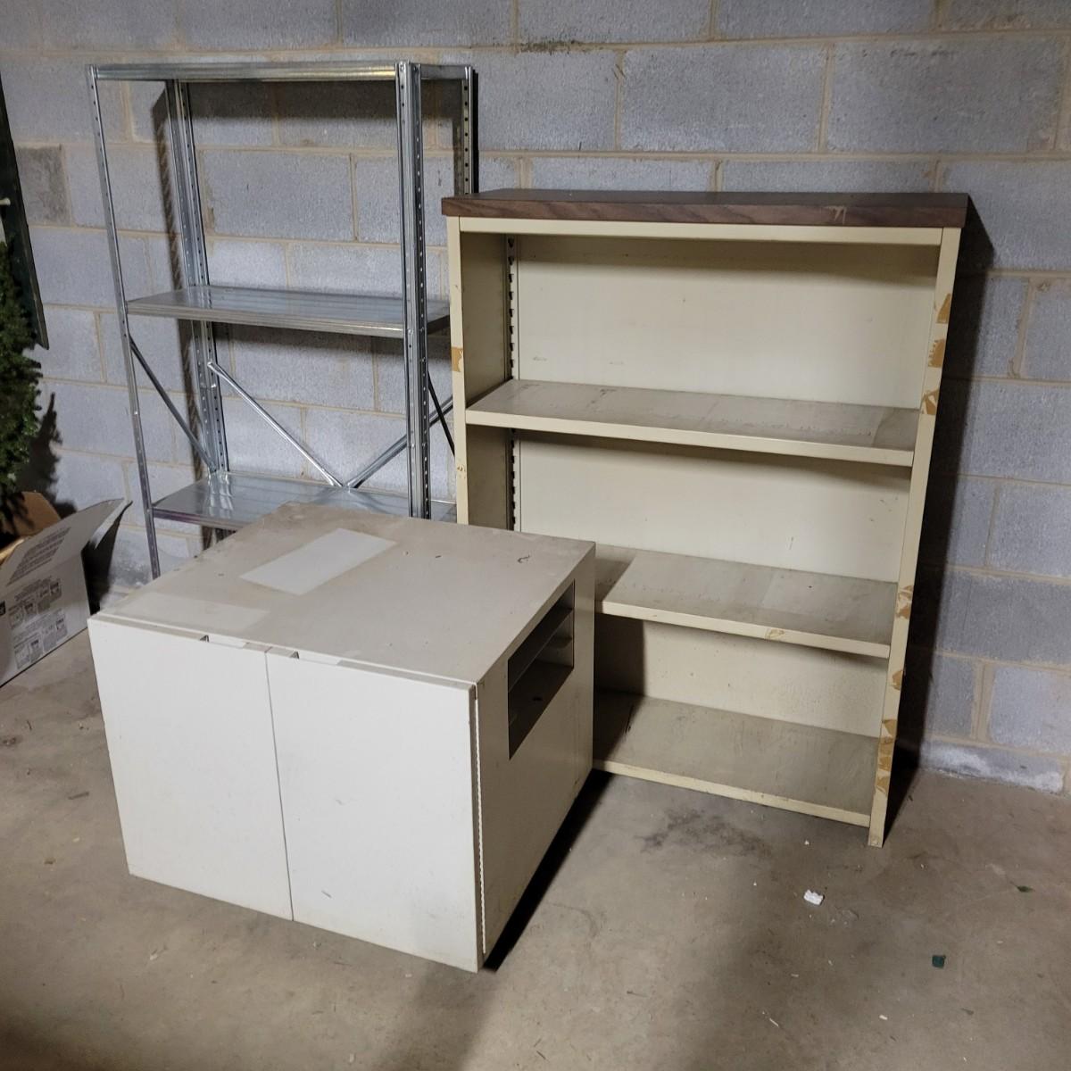 Two Metal Shelving Units and a Metal Cabinet (BS2-DW)