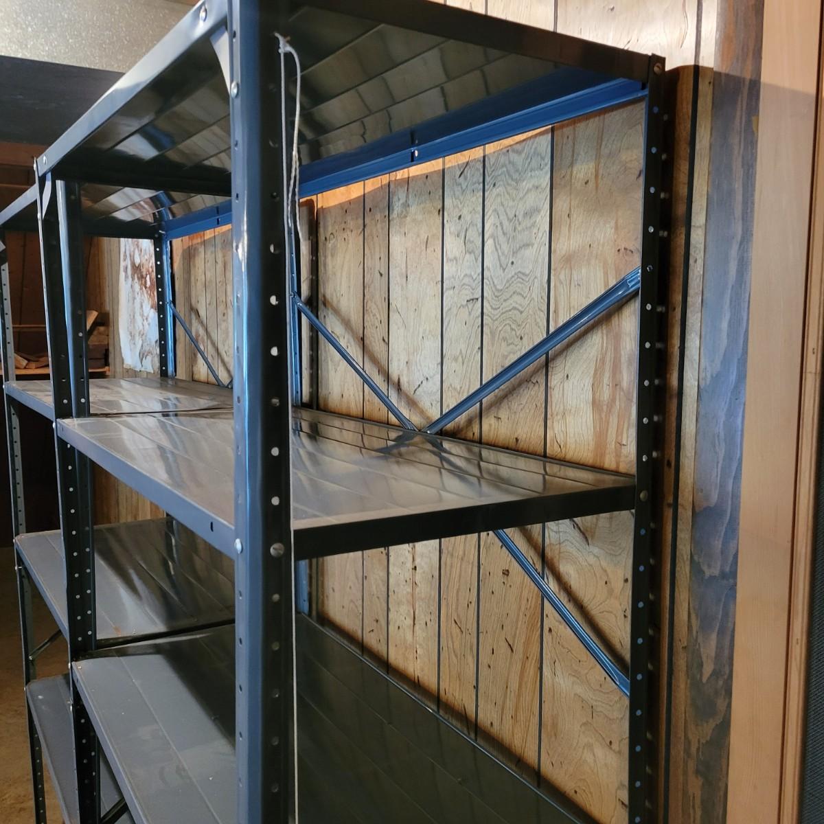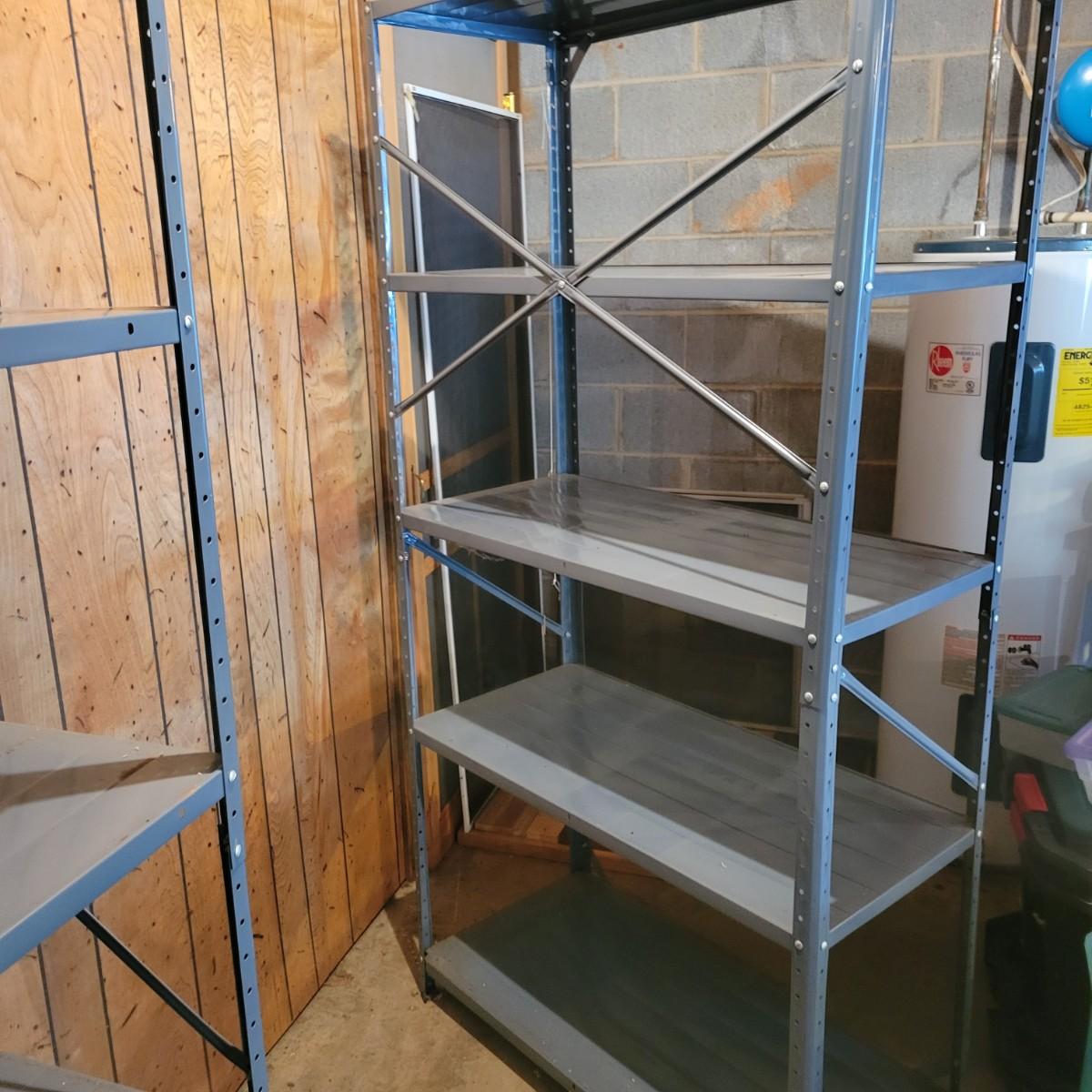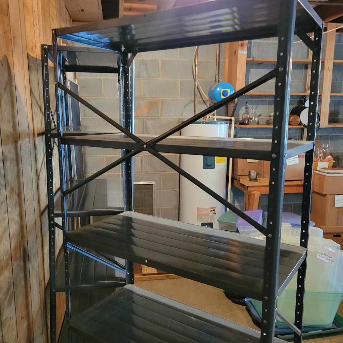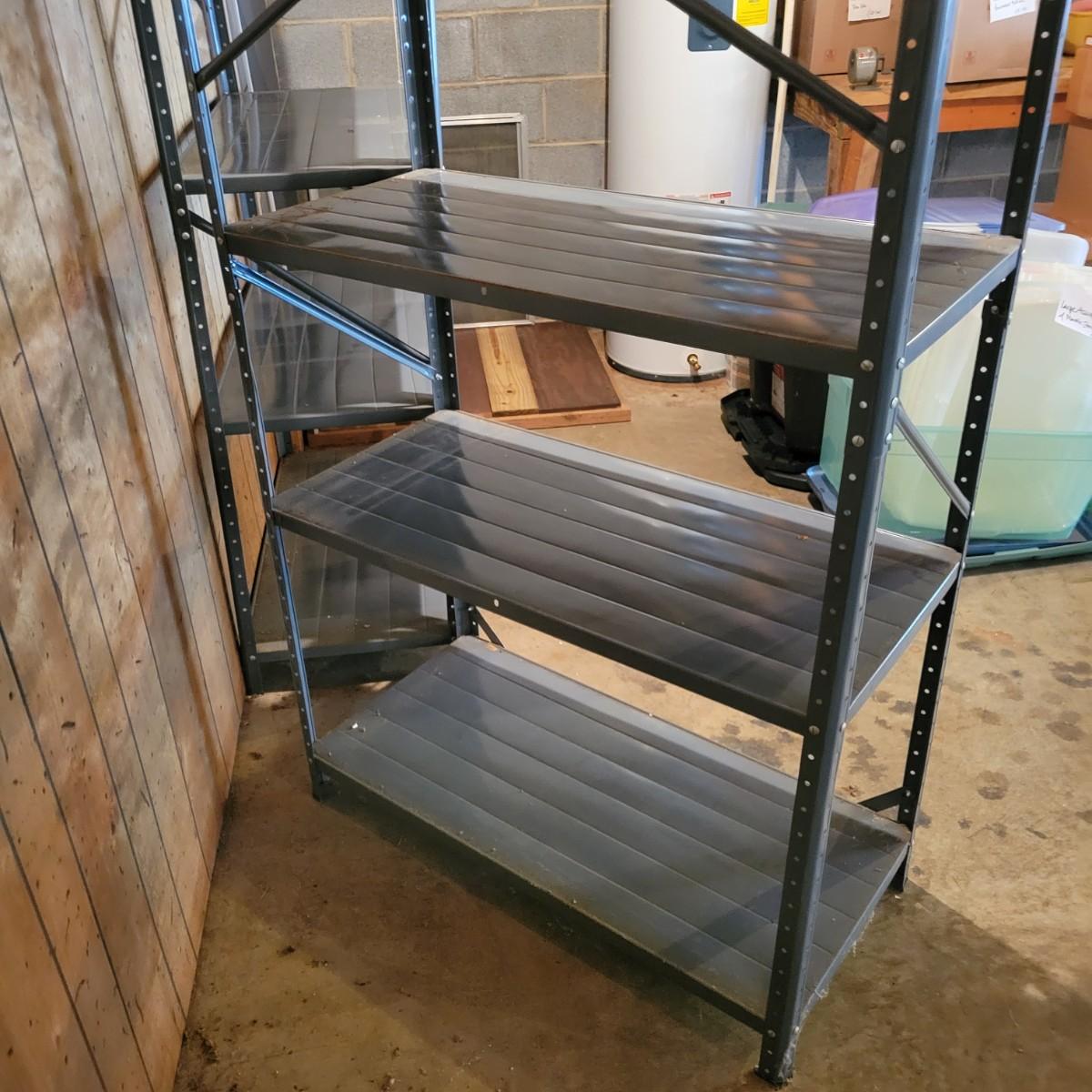 A pair of metal shelving units that have adjustable shelves. Each unit measures approximately 36.5" x 18" x 73"H. Local pickup only