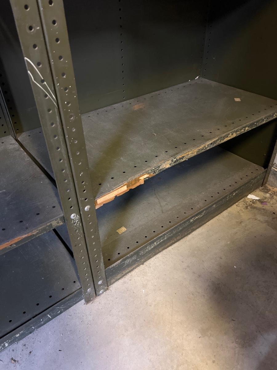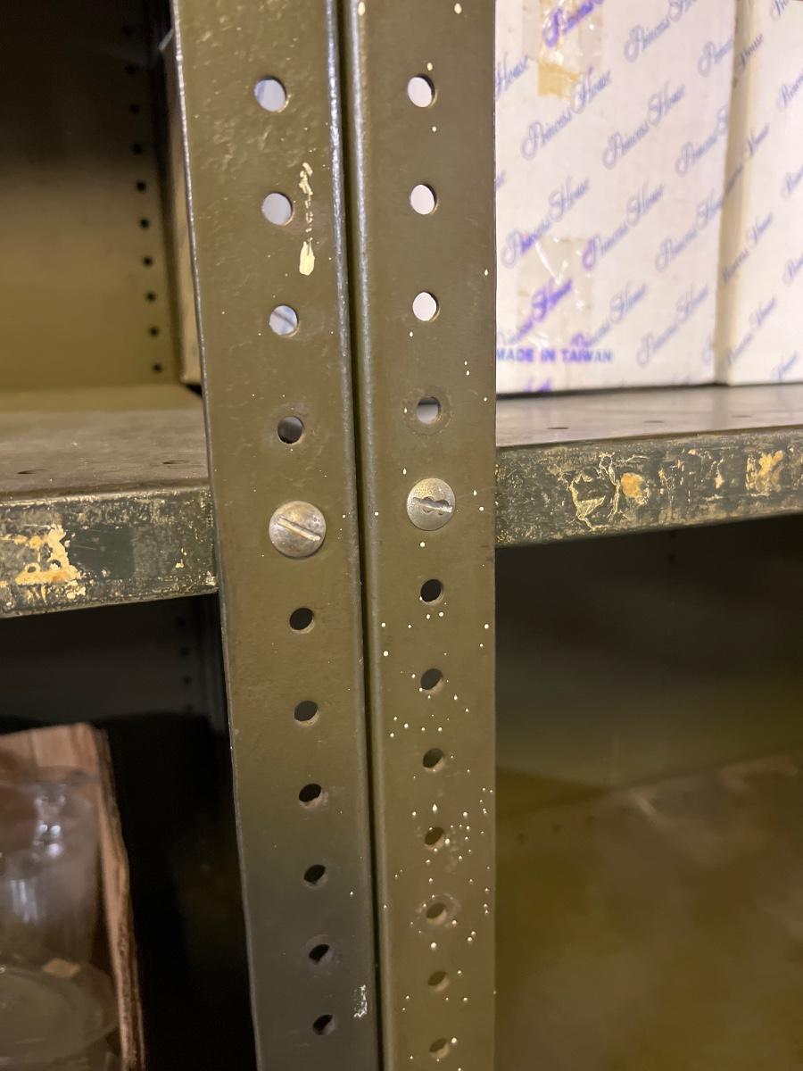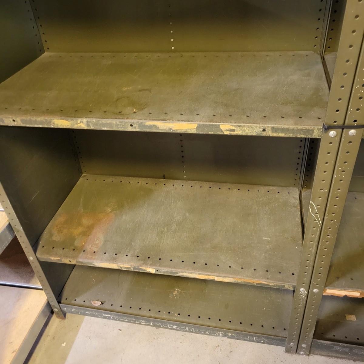 A pair of all metal shelving units that measure approximately 36.5" x 18.5" x 84"H. The shelves are adjustable and there is some rust. They could be disassembled for transport, see images. Local pickup only. Winning bidder must bring assistance to help move and load this item due to its weight and/or size.
