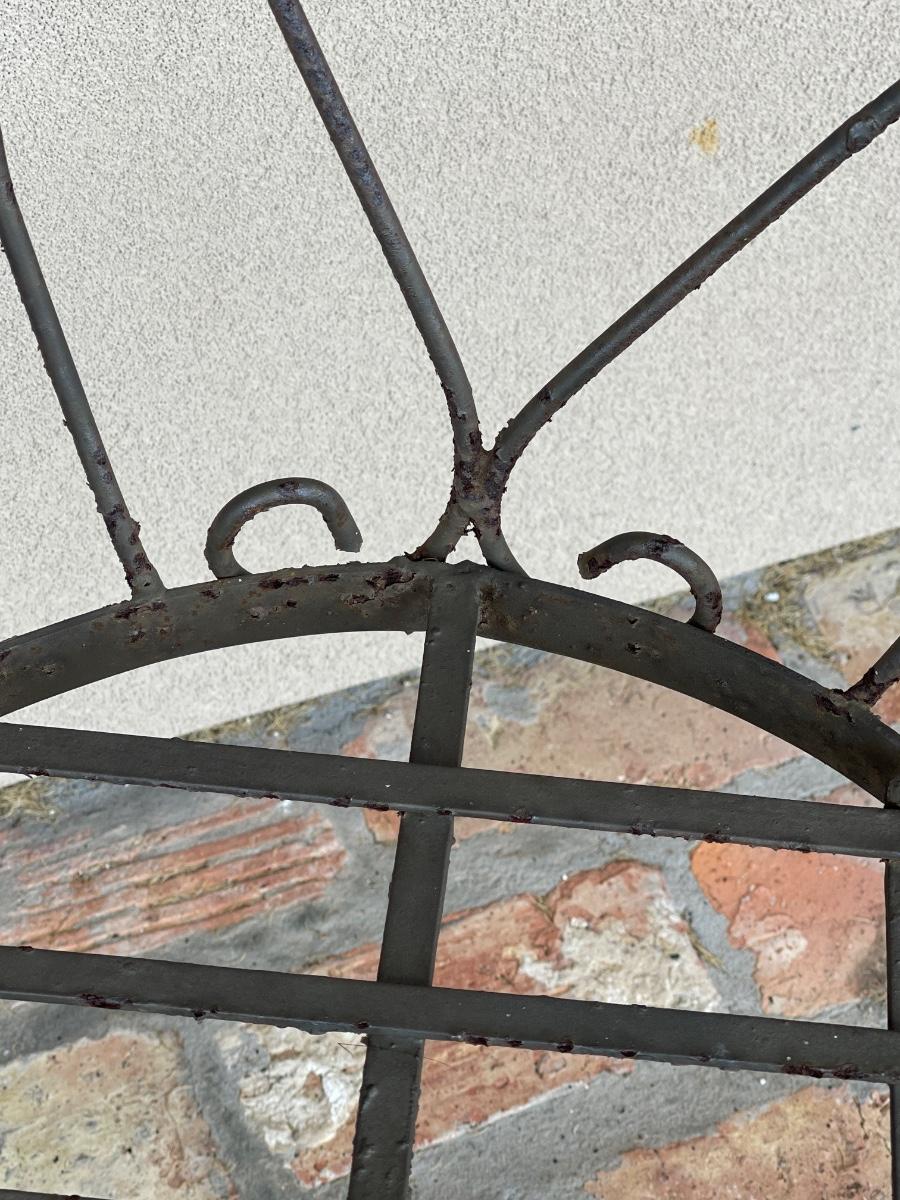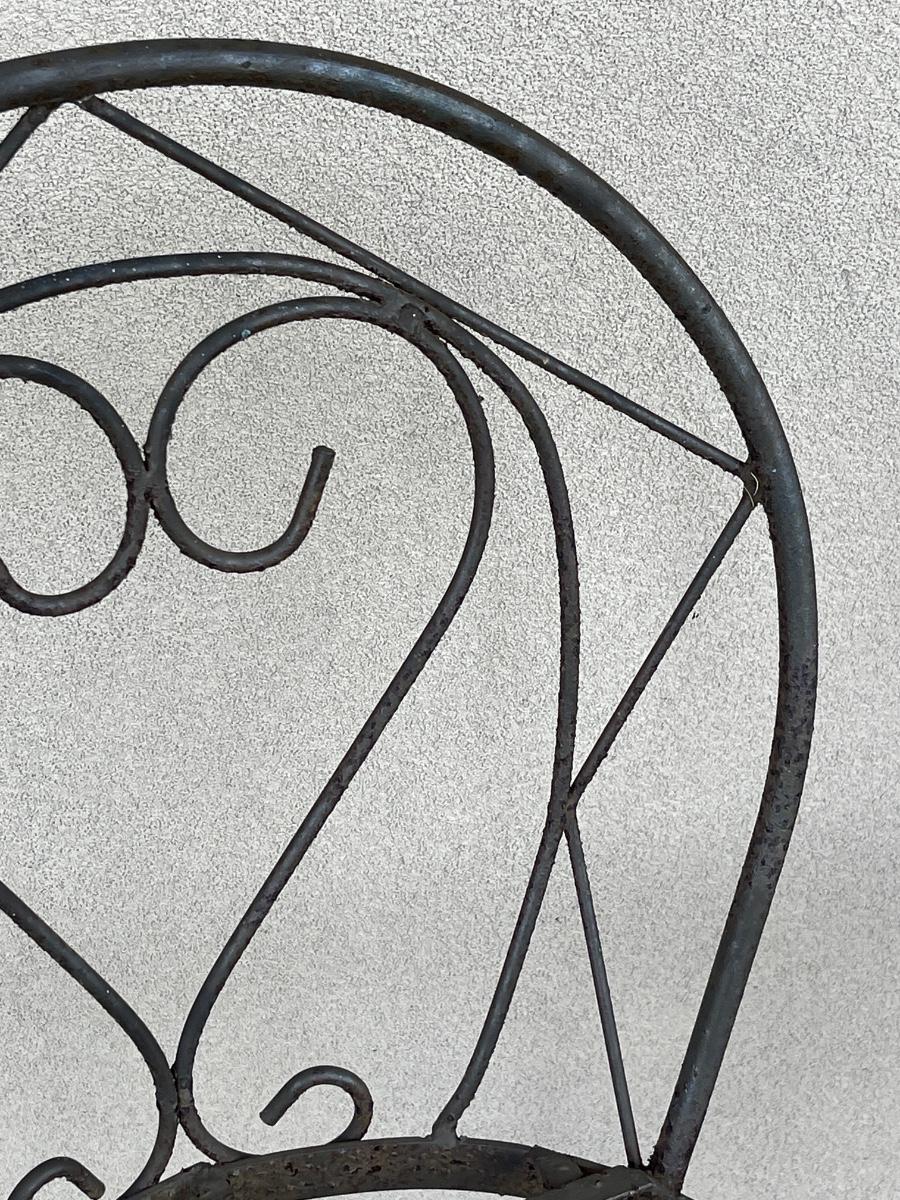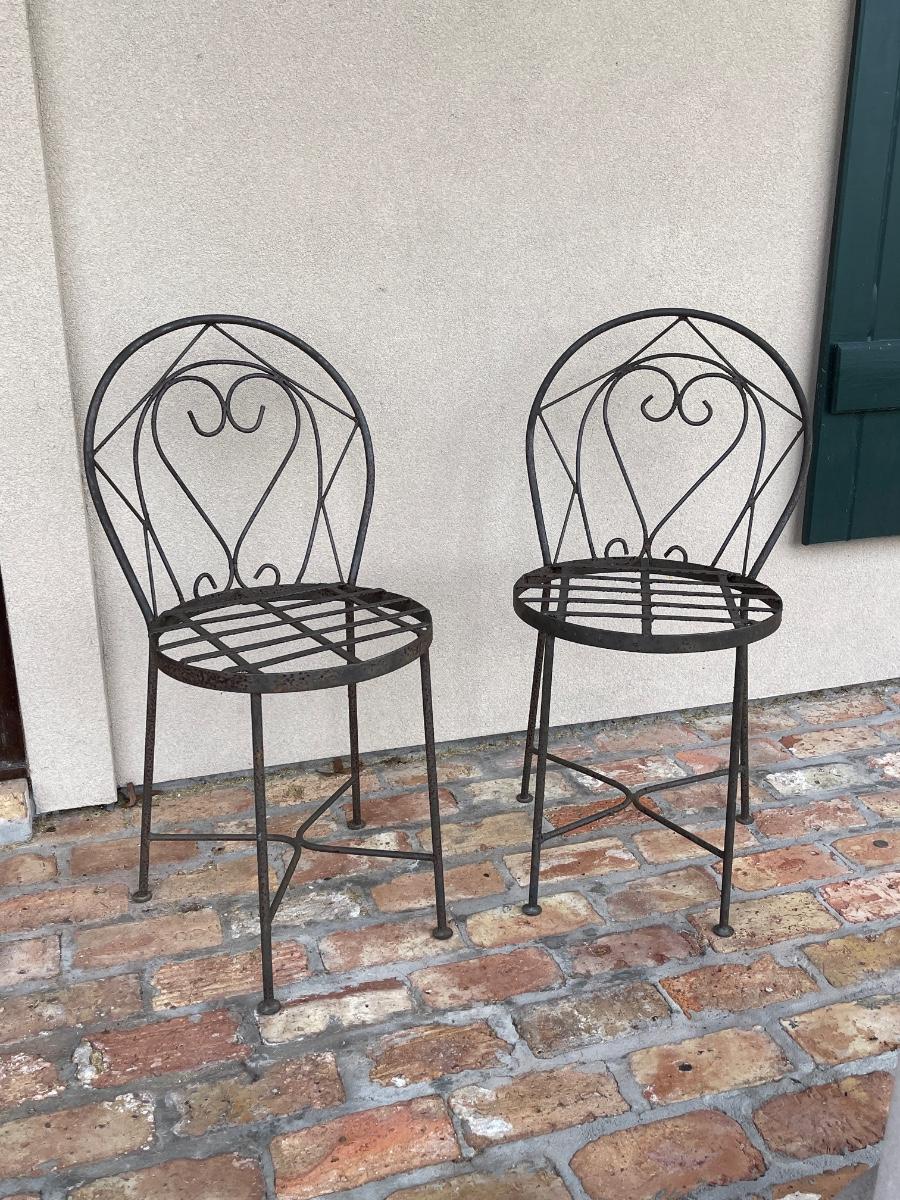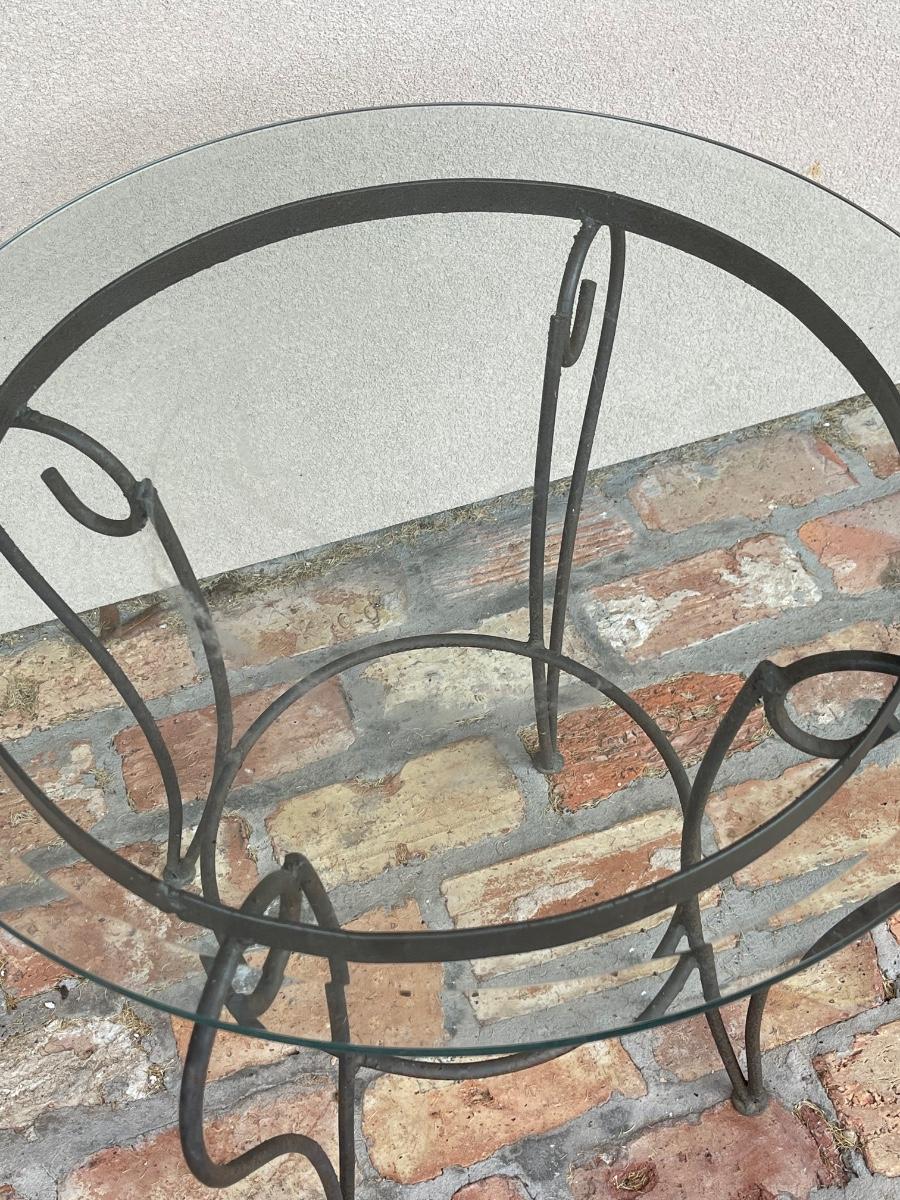 Three (3) Piece Set ~ Patio kept ~ surface rusting (see photos) ~ 32.5” H x 15” round. From Seat to floor is 18” / Round Table is 21" H with a 24" Beveled Glass Top *Glass top has been outdoors and has surface scratches.