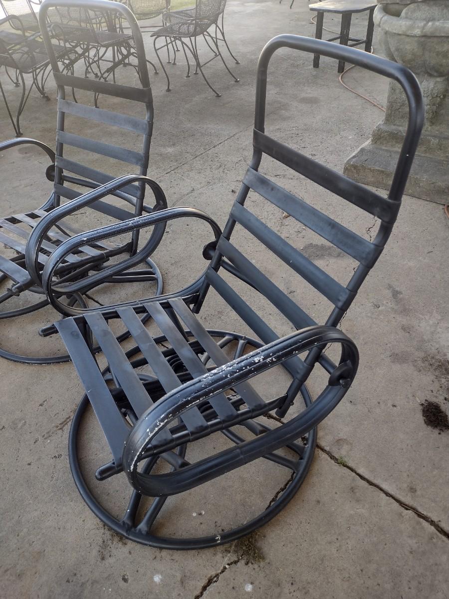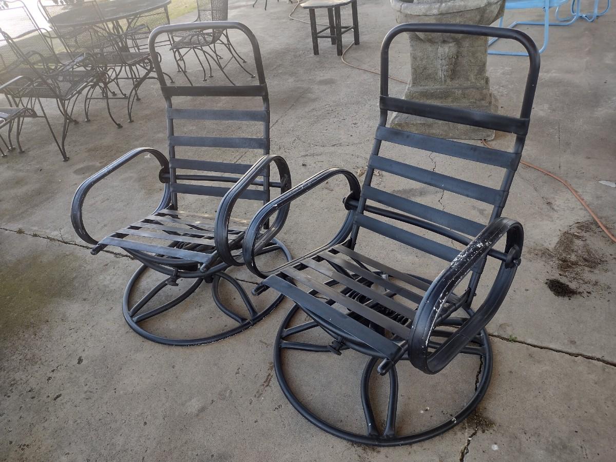 Pair of Metal Swivel and Rocker Design Patio Chairs