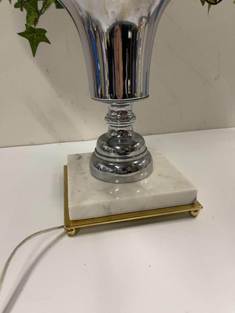Pair of Metal Table Lamps with Marble Bases and Artificial Ivy