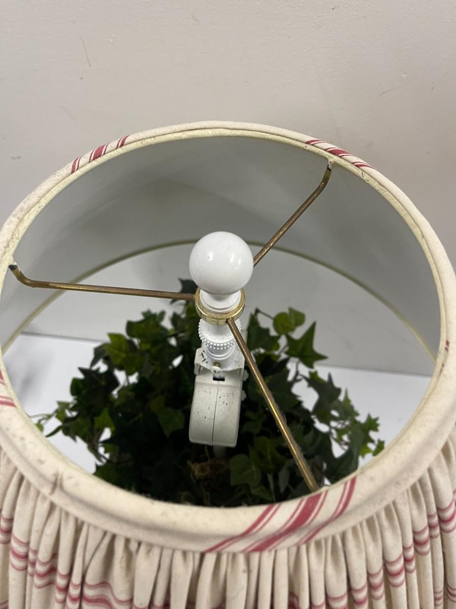 Pair of Metal Table Lamps with Marble Bases and Artificial Ivy. 23 1/2" high to top of finial.