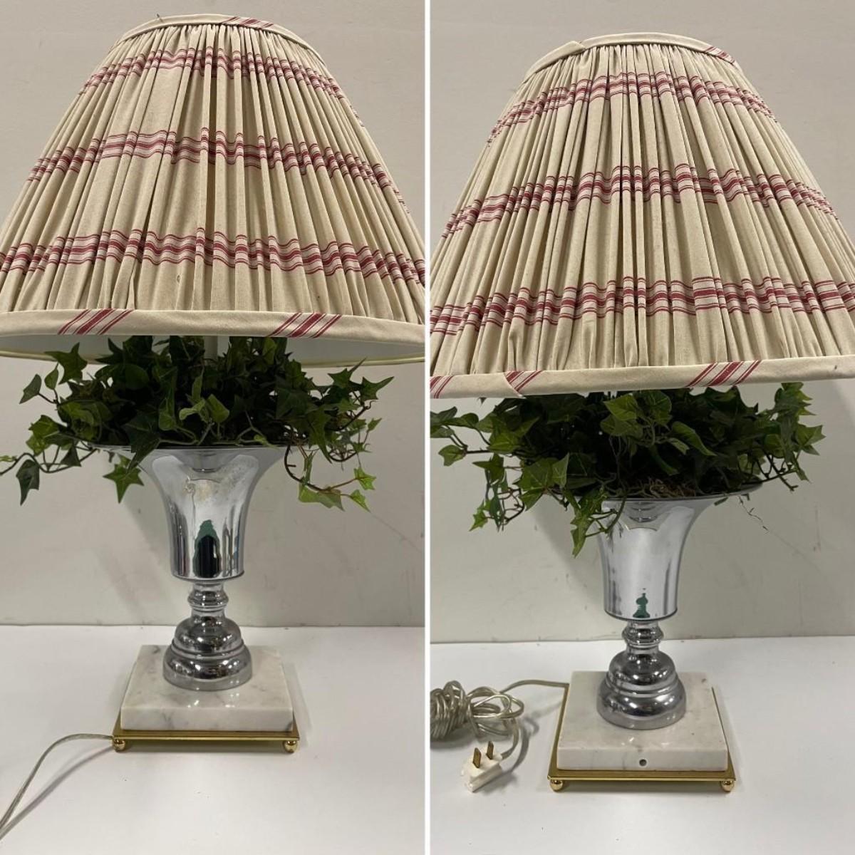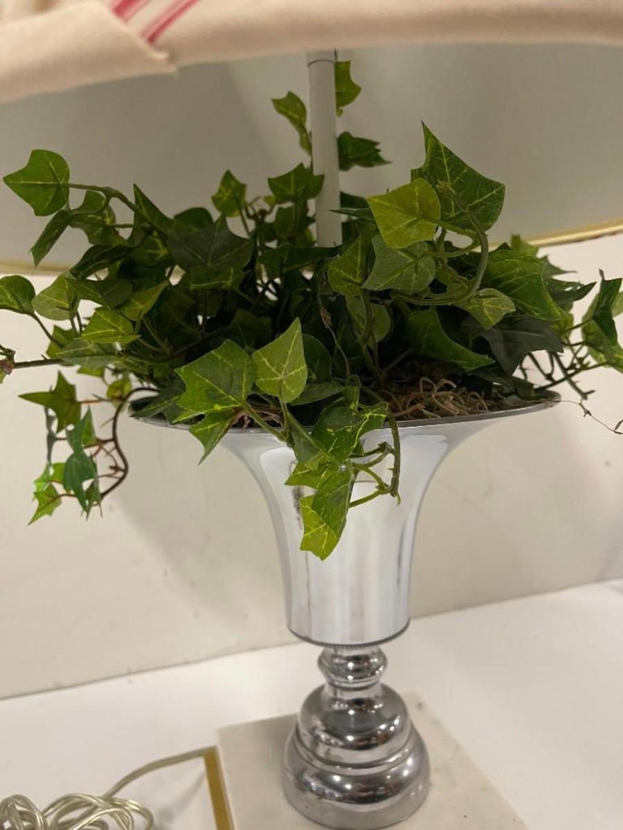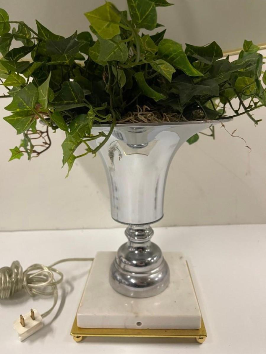 Pair of Metal Table Lamps with Marble Bases and Artificial Ivy