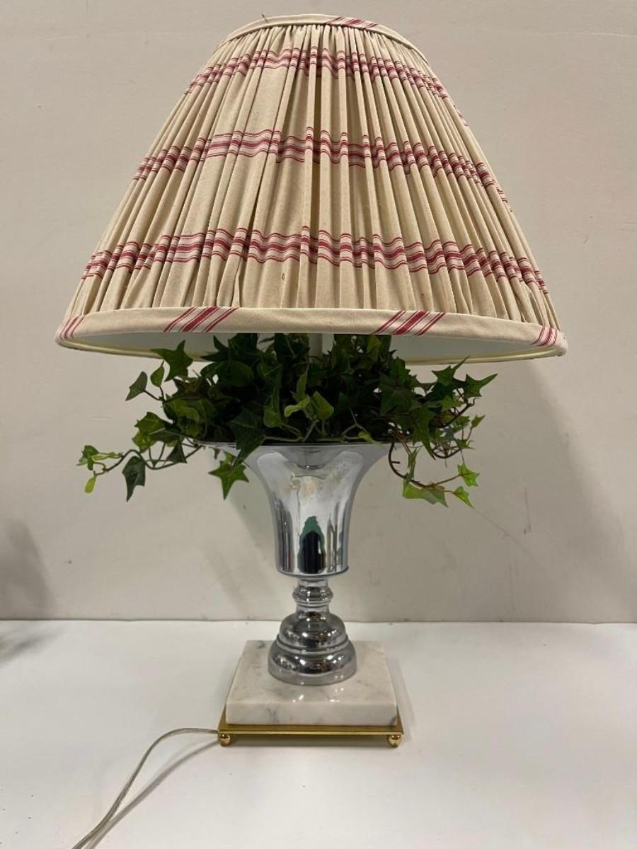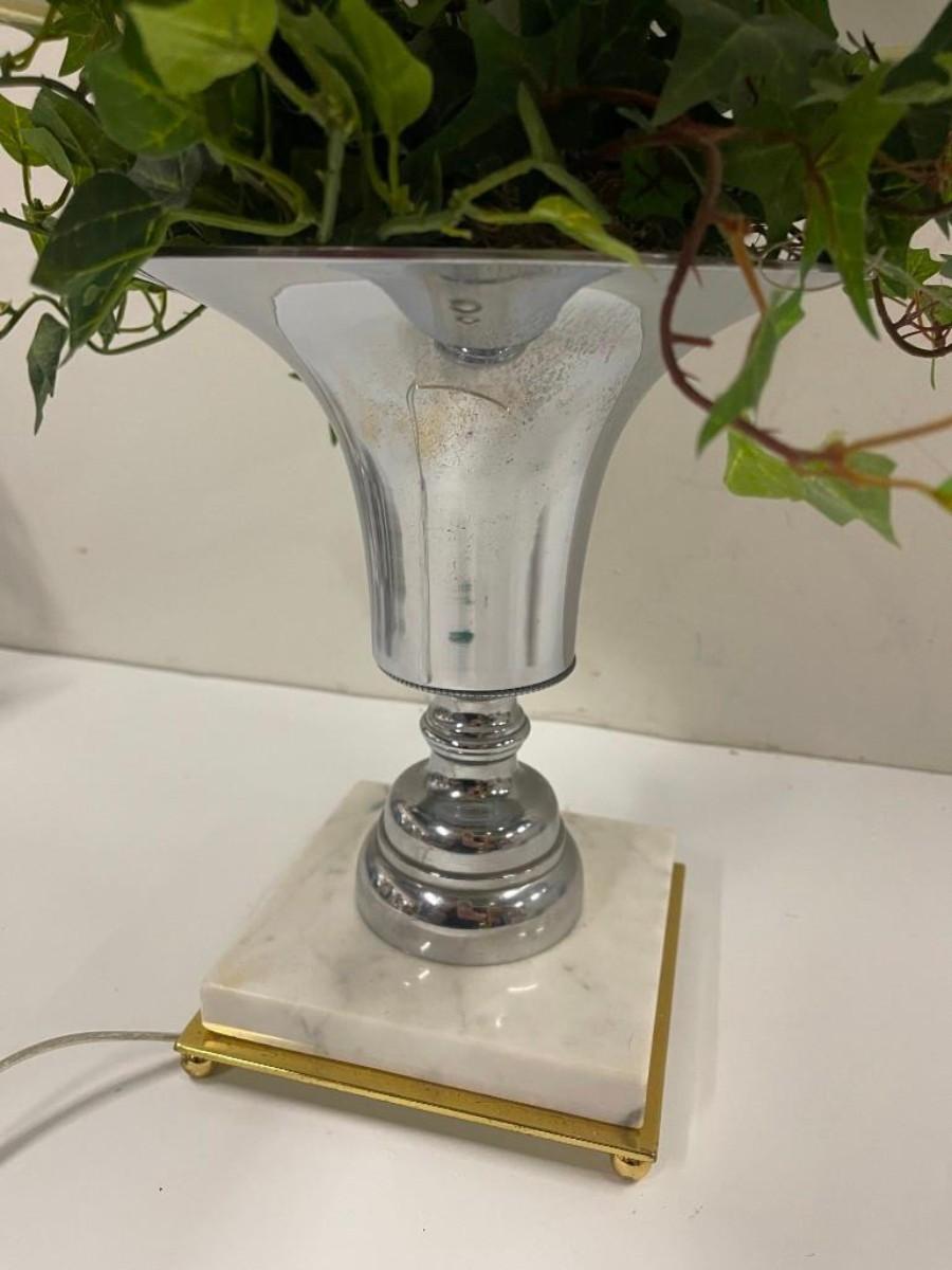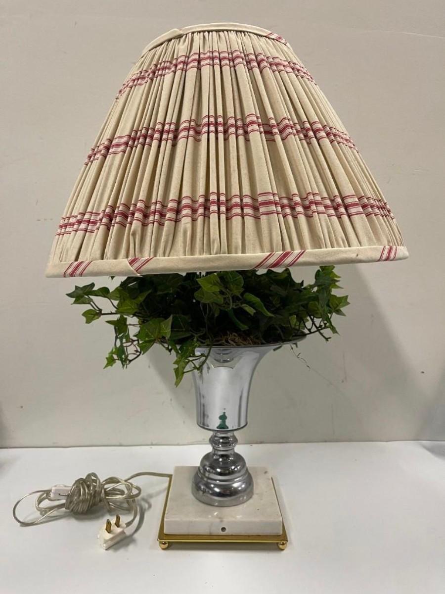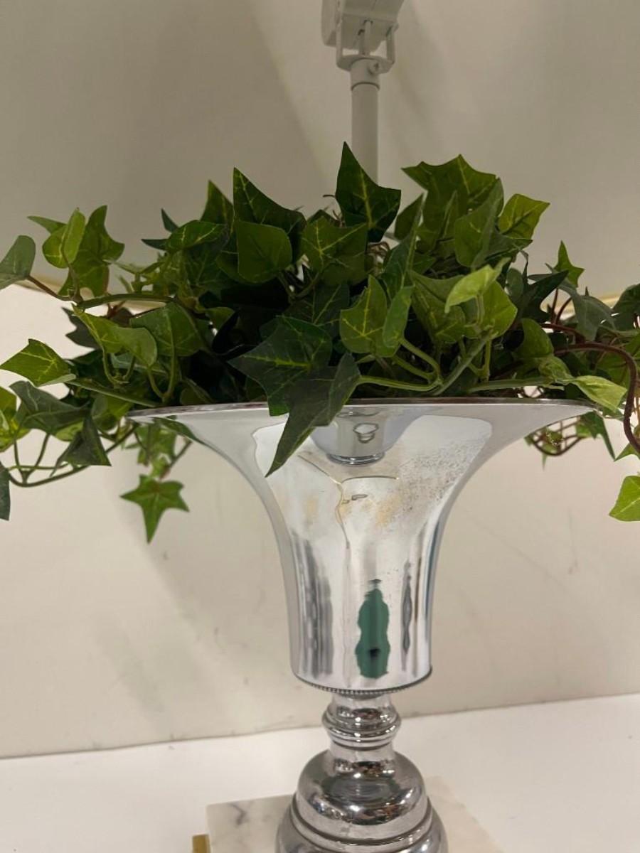 Pair of Metal Table Lamps with Marble Bases and Artificial Ivy
