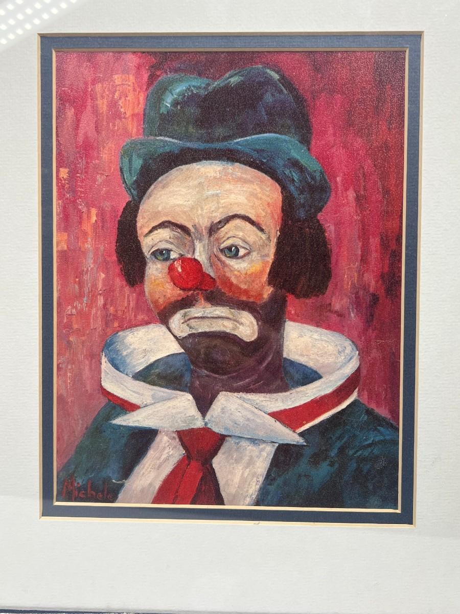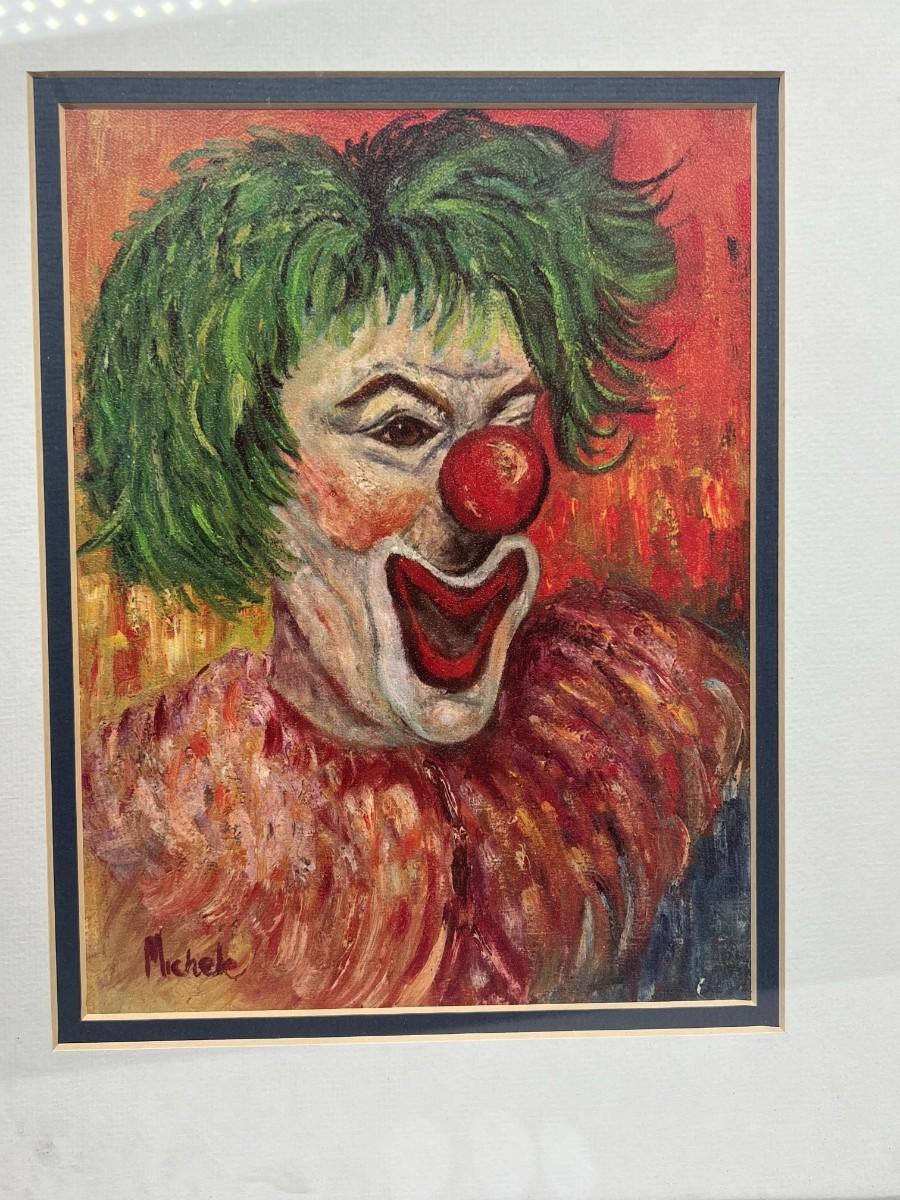 Pair of Michelle Vale Spooky Happy Sad Clown Framed Art Prints