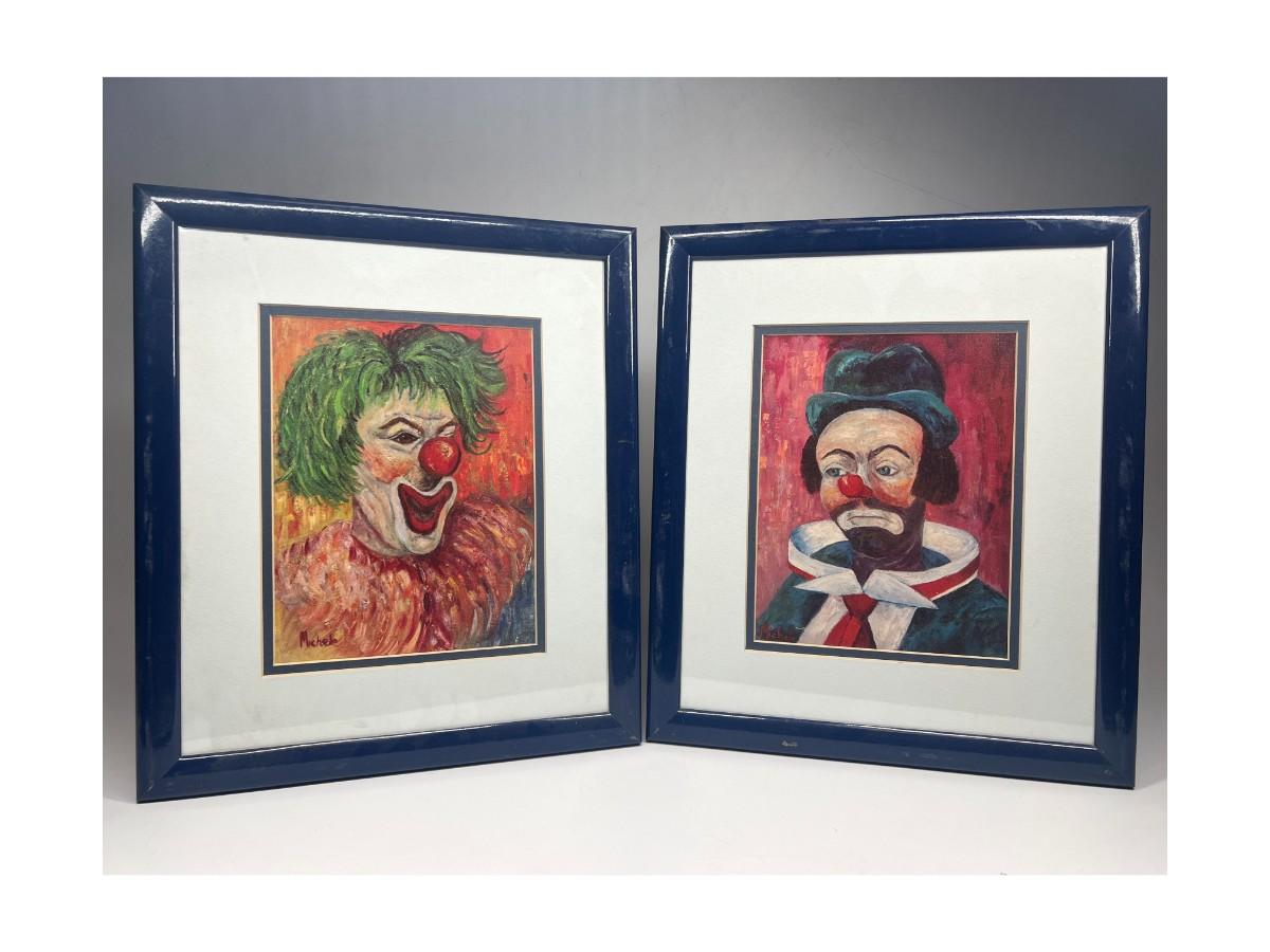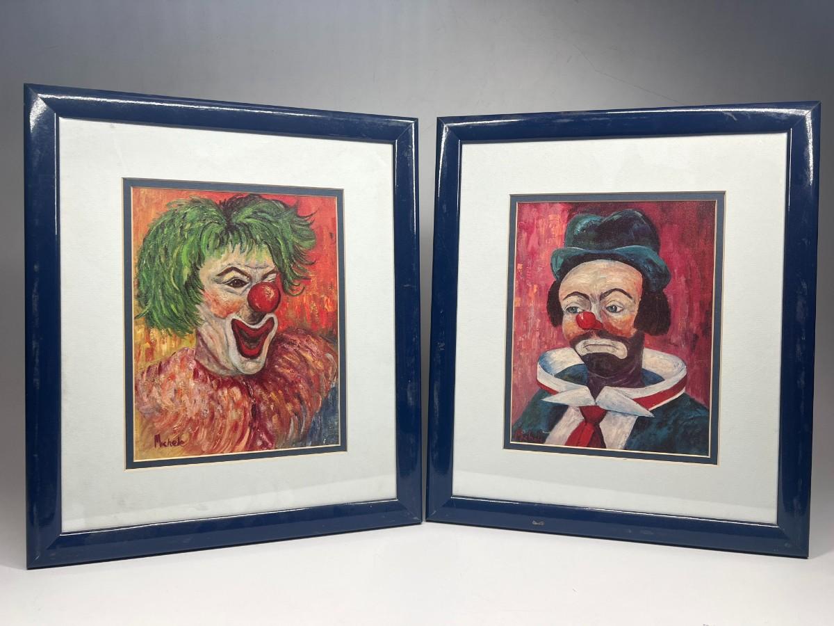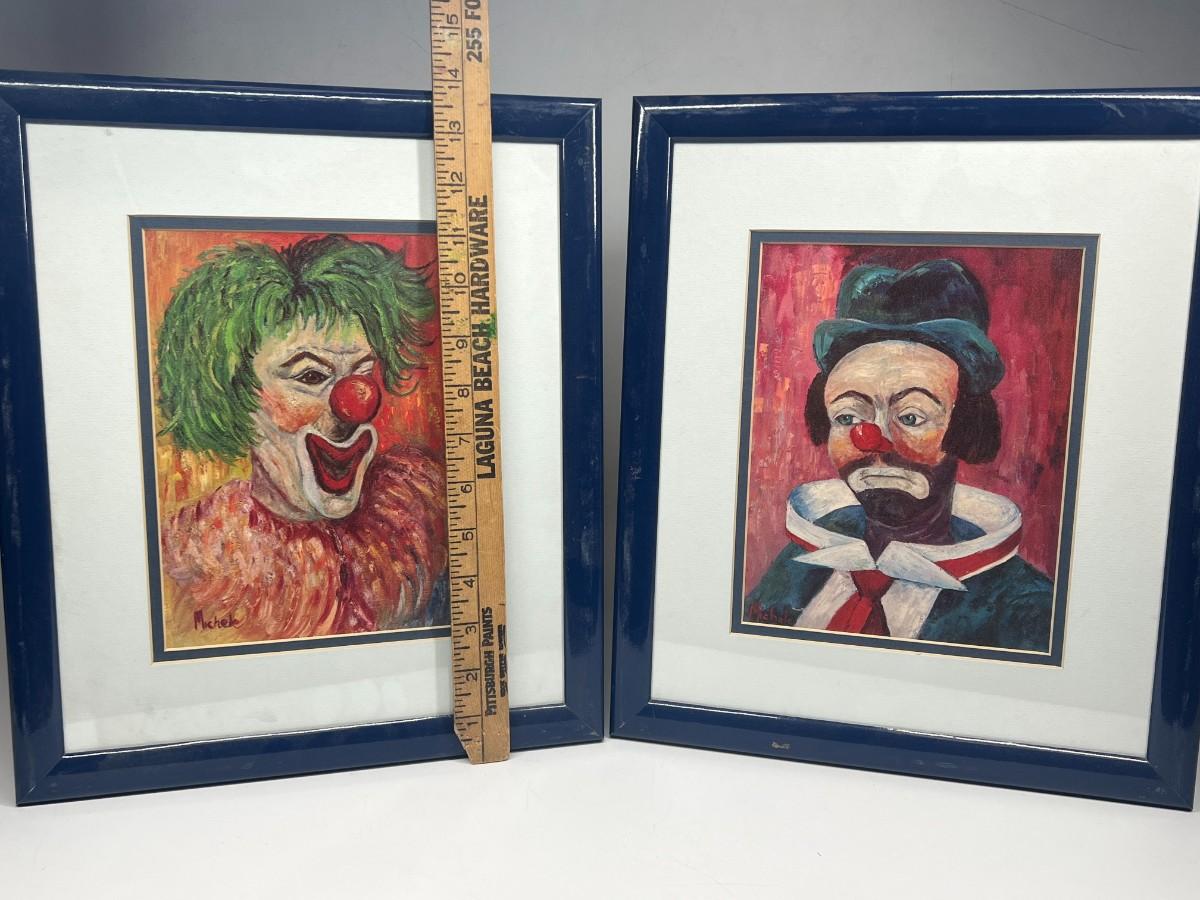 Pair of Michelle Vale Spooky Happy Sad Clown Framed Art Prints