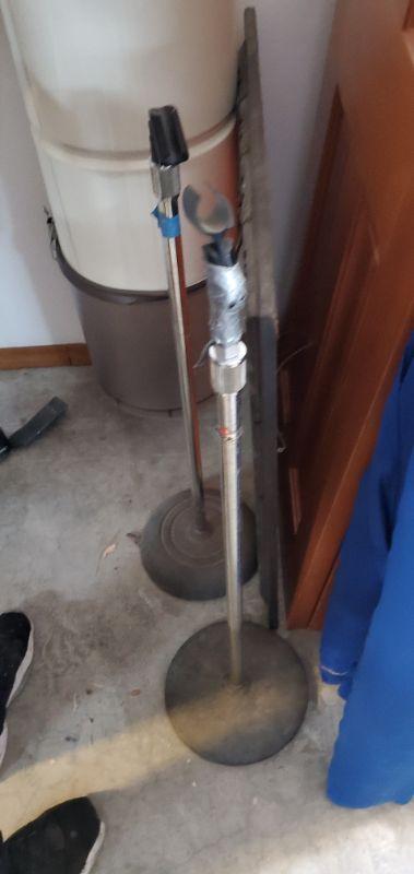 One is in almost new condition, the other has a repair done with duct-tape. Both work to hold up microphones