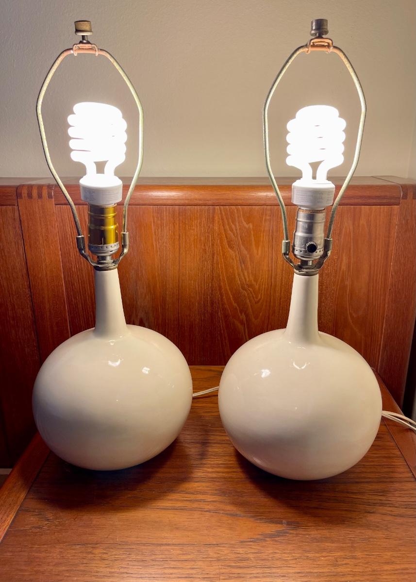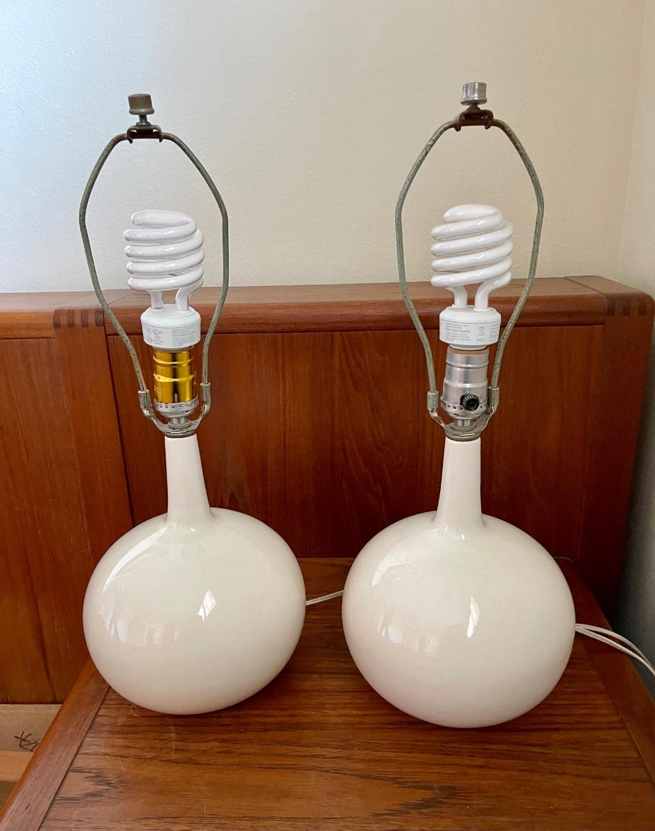 Pair of Mid Century Modern Lamps Bulbous White Bases.