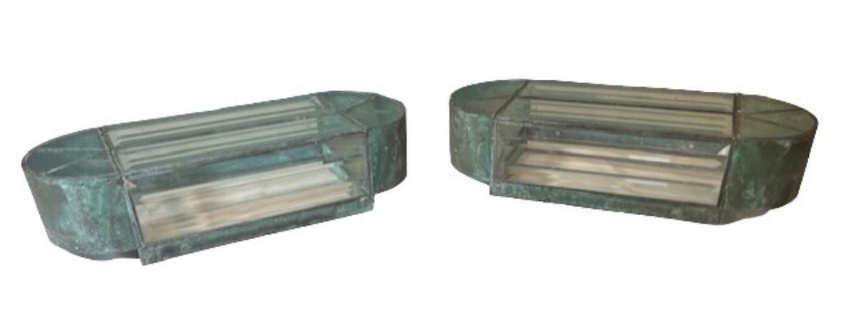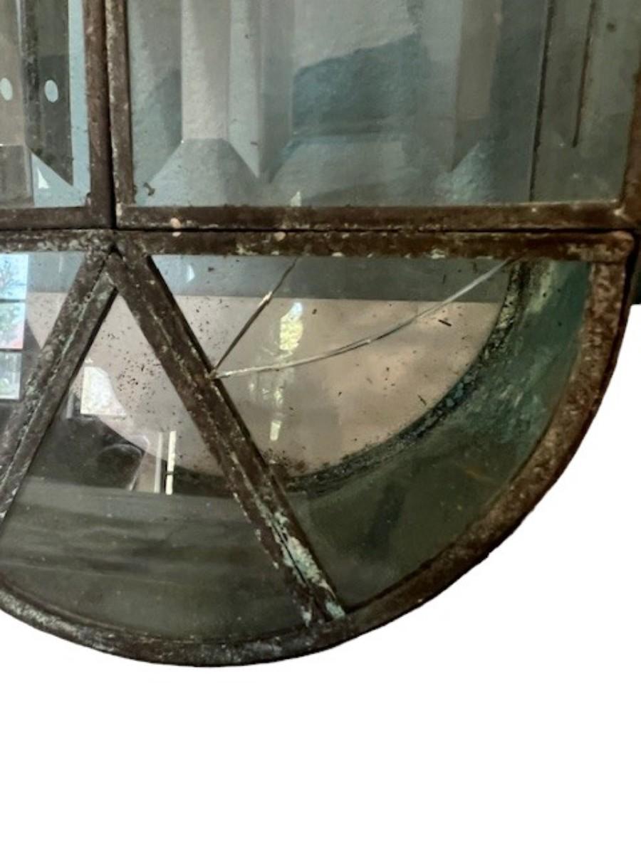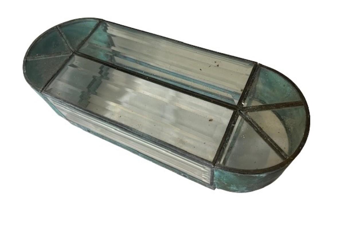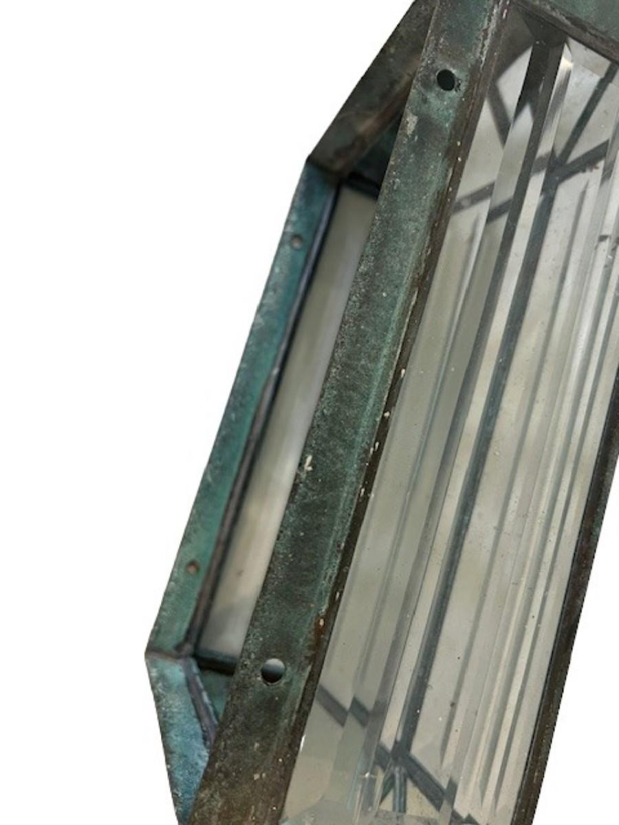 Beveled glass is intact, but one piece has a crack (pictured). Measurement: 16.5"L x 7"W x 4.5"D (each).