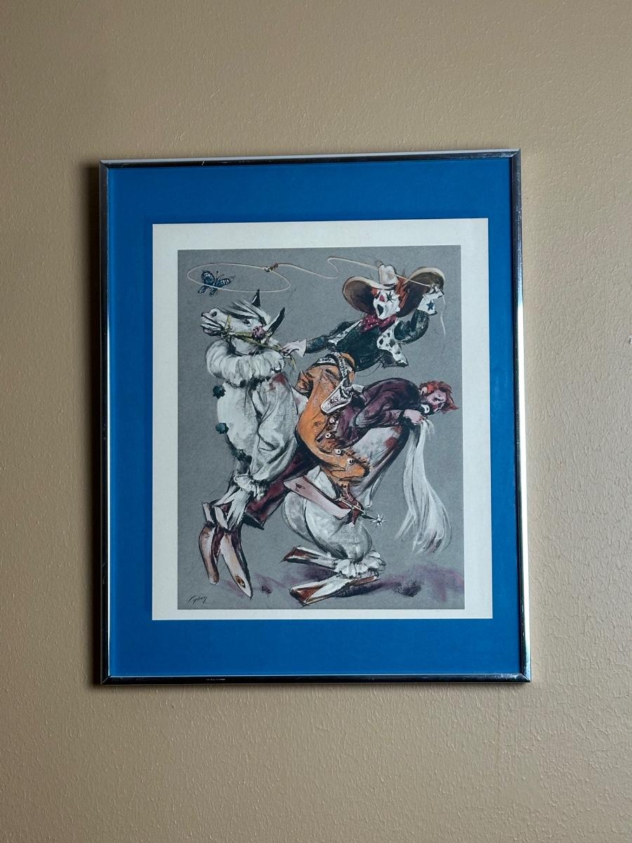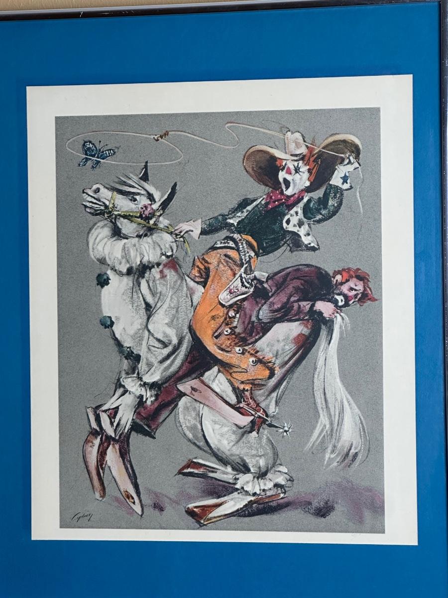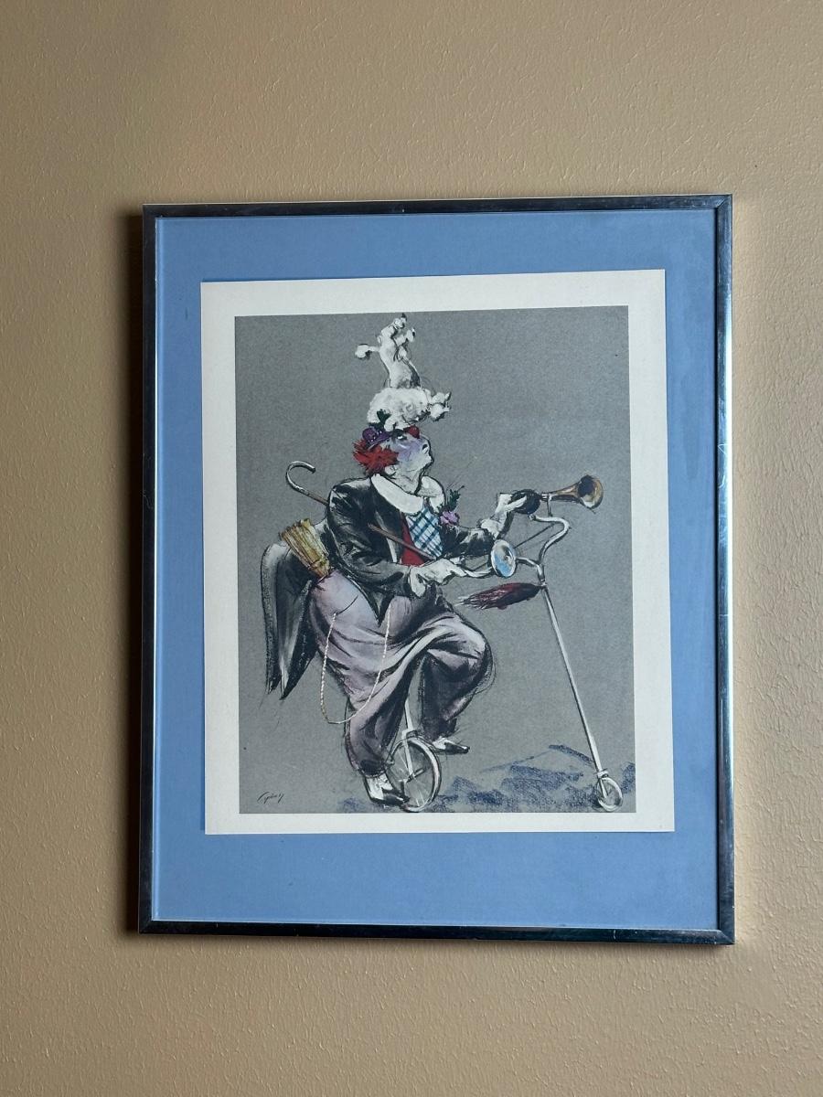 Pair of Mid-Century “Cydney” Circus Clown Framed Prints
