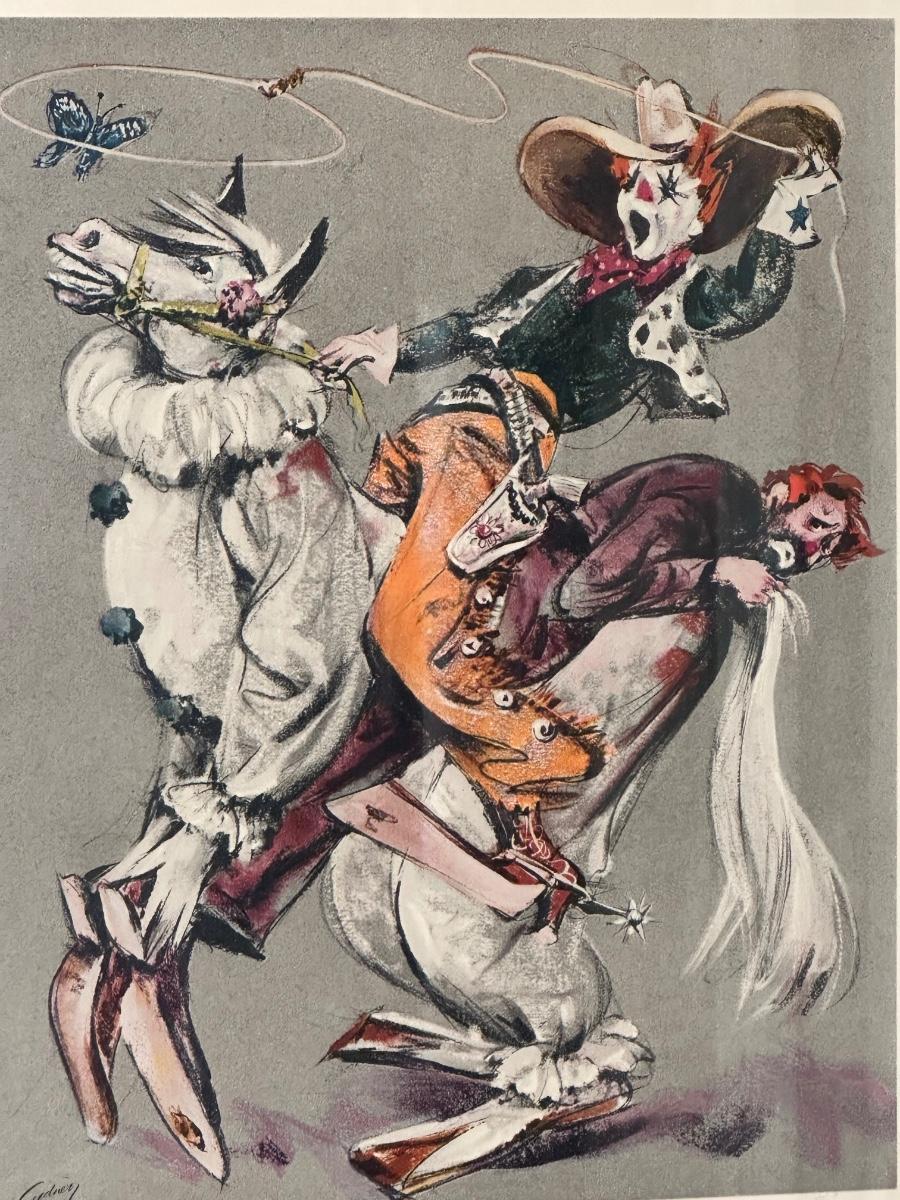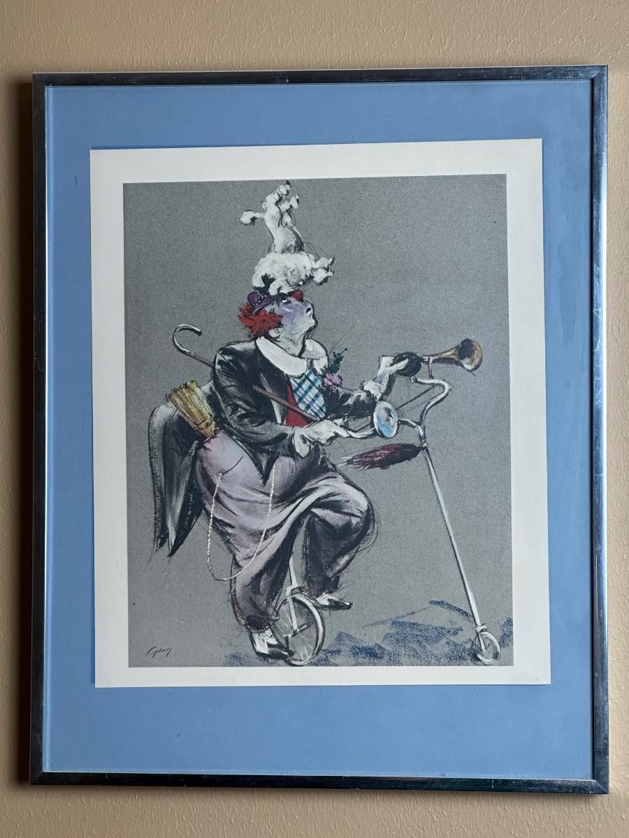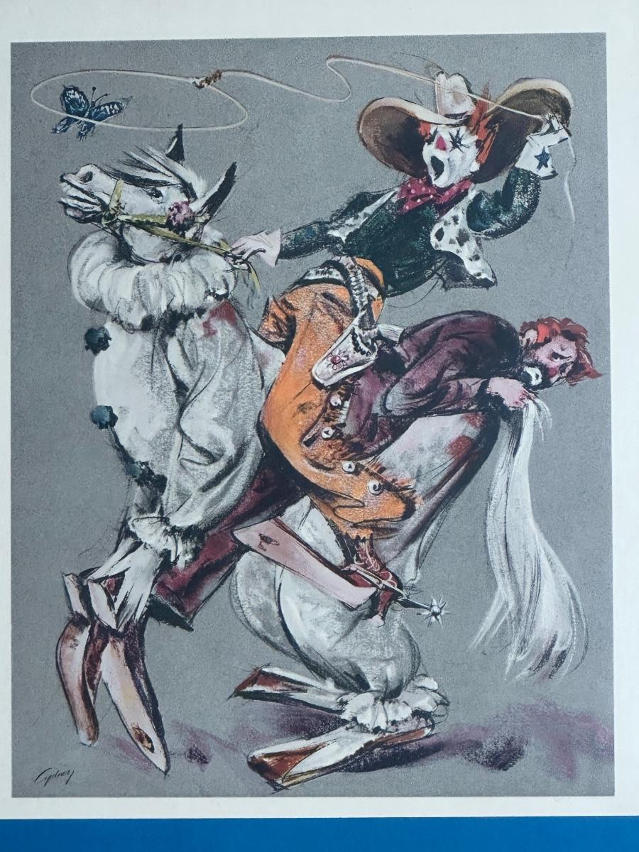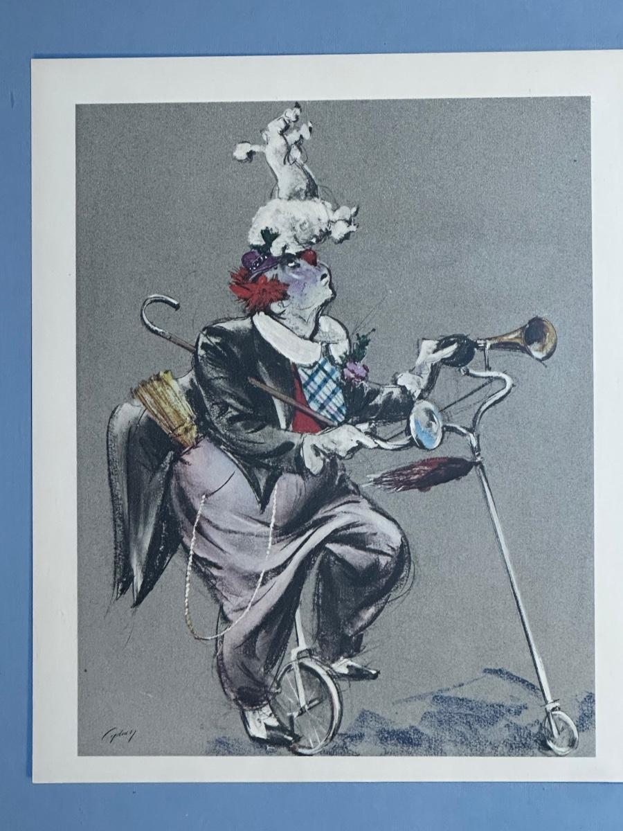 Pair of Mid-Century “Cydney” Circus Clown Framed Prints