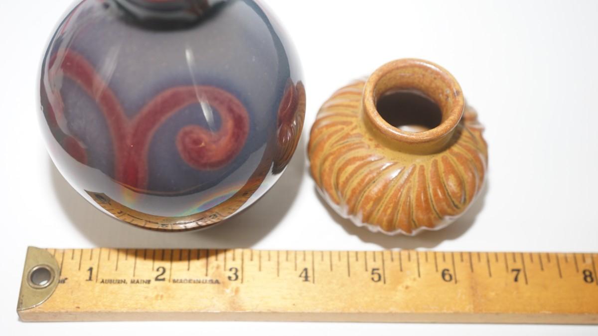Swedish light weight turned vase of glazed finish signed on base 5 1/4"