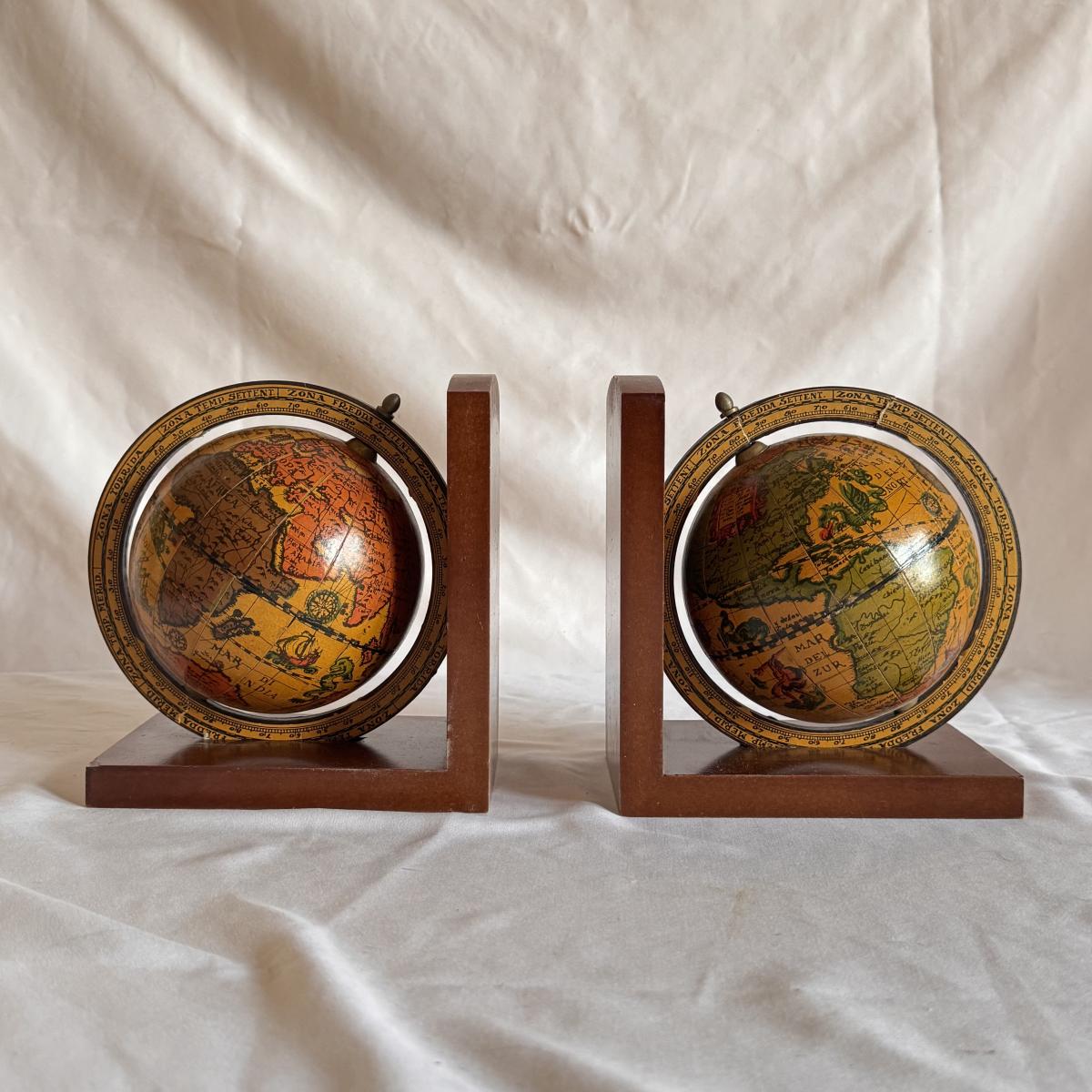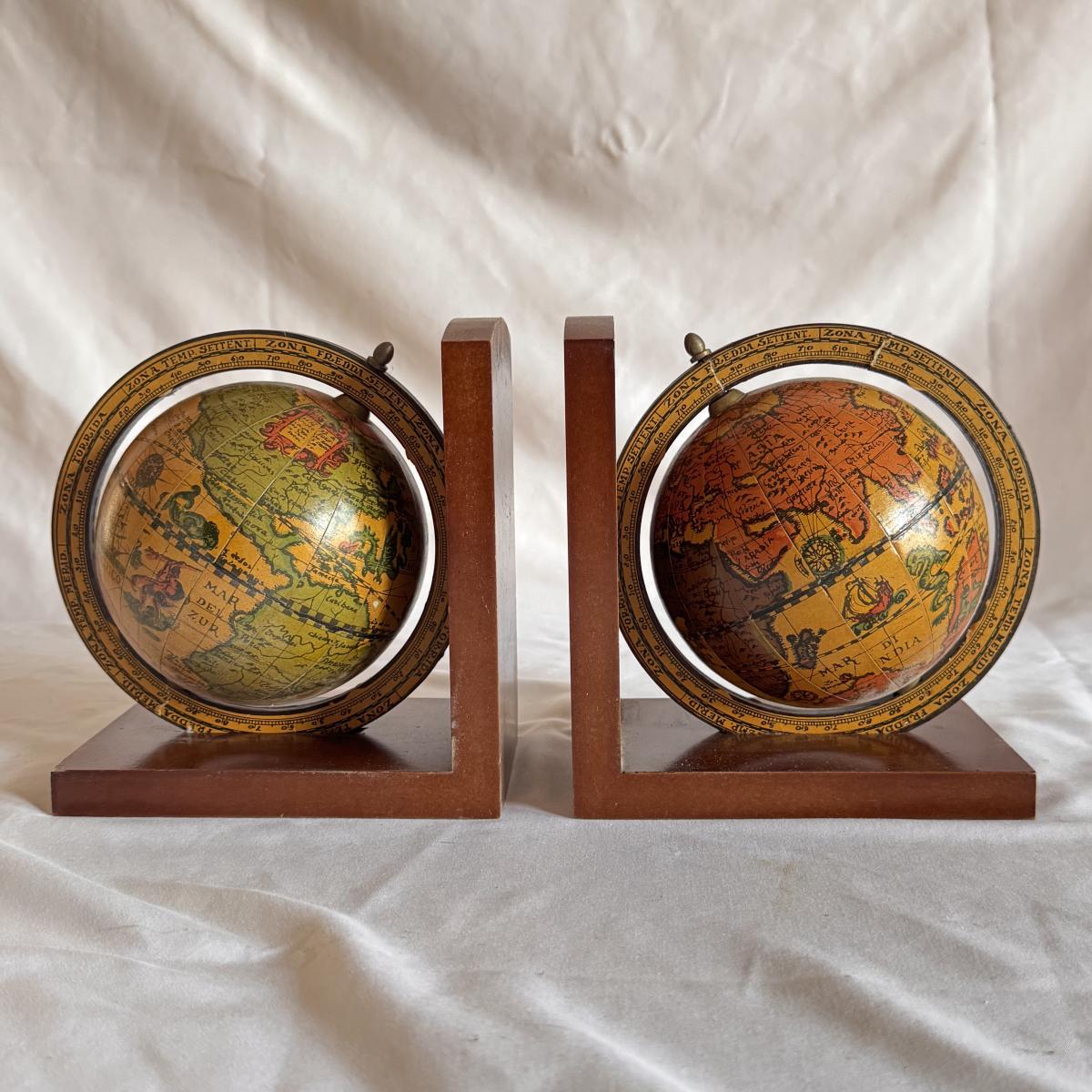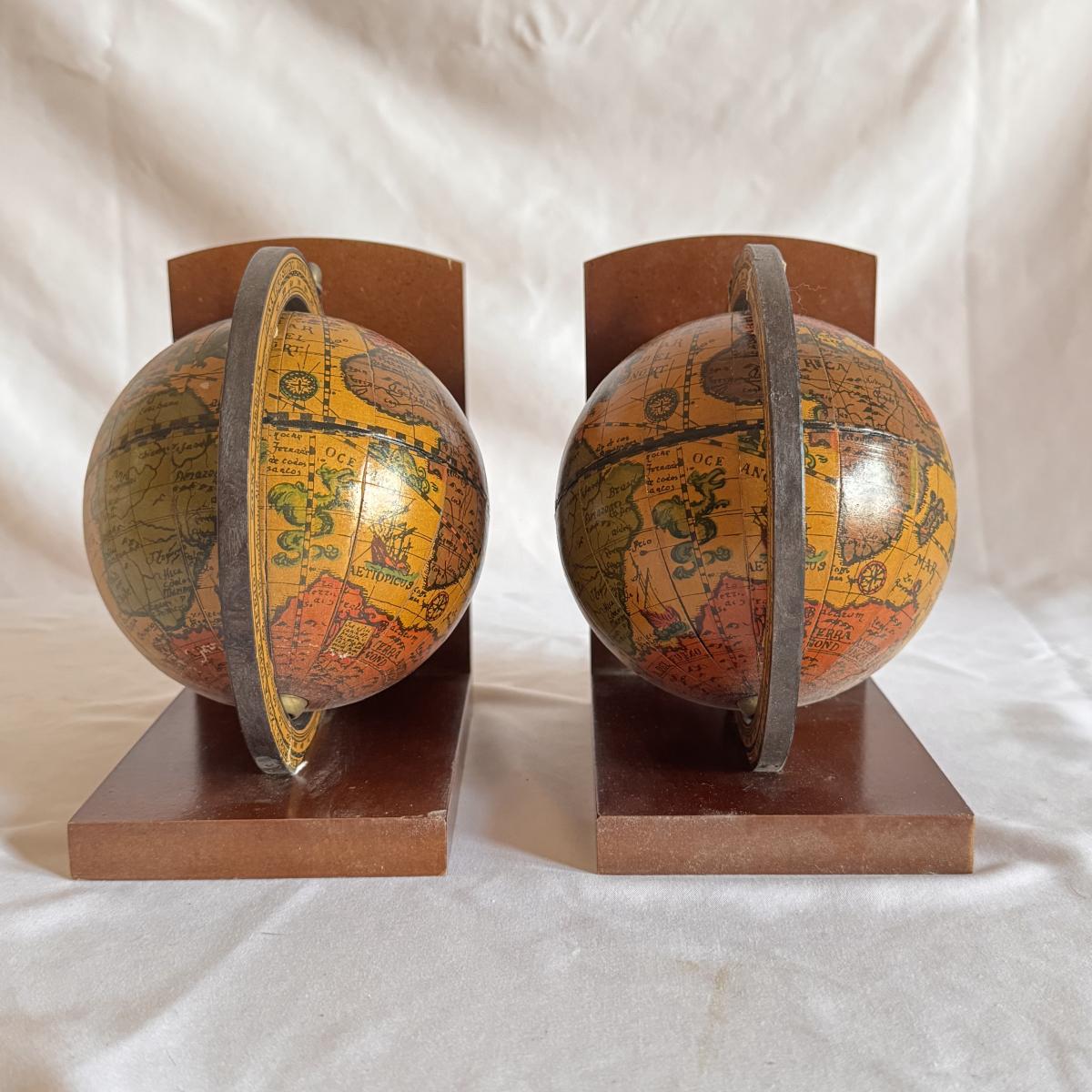Pair of Mid-Century Old World Globe Bookends (B3-DZ)