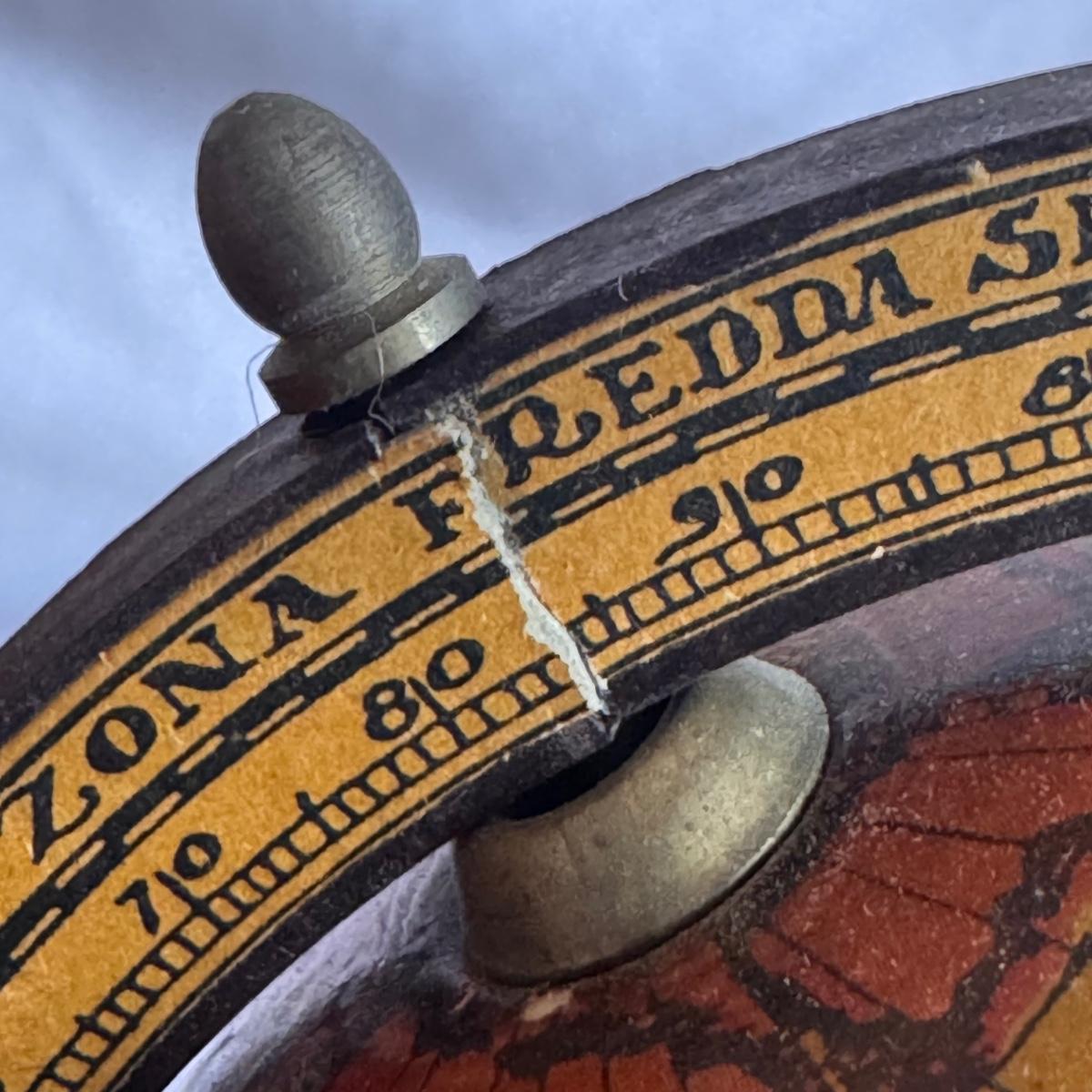 Lot includes two mid-century old world globe bookends. They both individually measure 6” x 4” x 6.5”H. One of the globes has two cracks on the outer rim - see pictures included. The globes have a felt slip-resistant bottom. Shipping available.