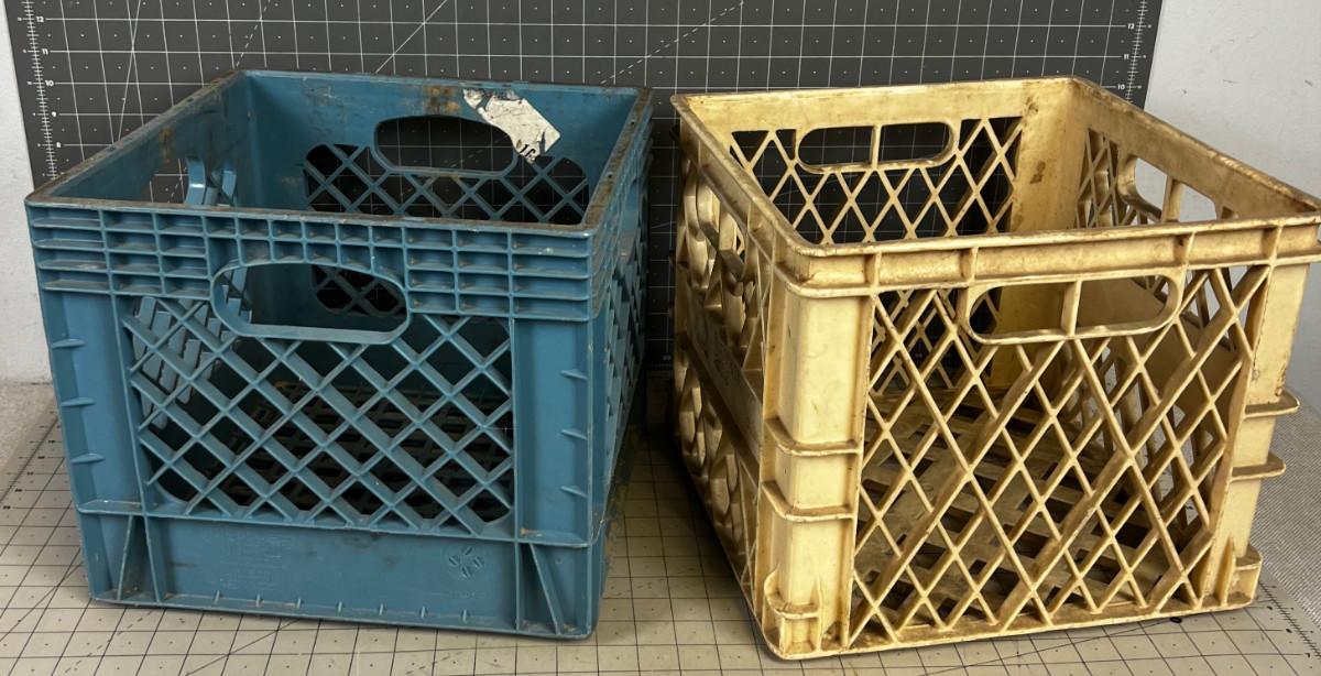 Pair of Milk Crates (Plastic Blue & Tan)