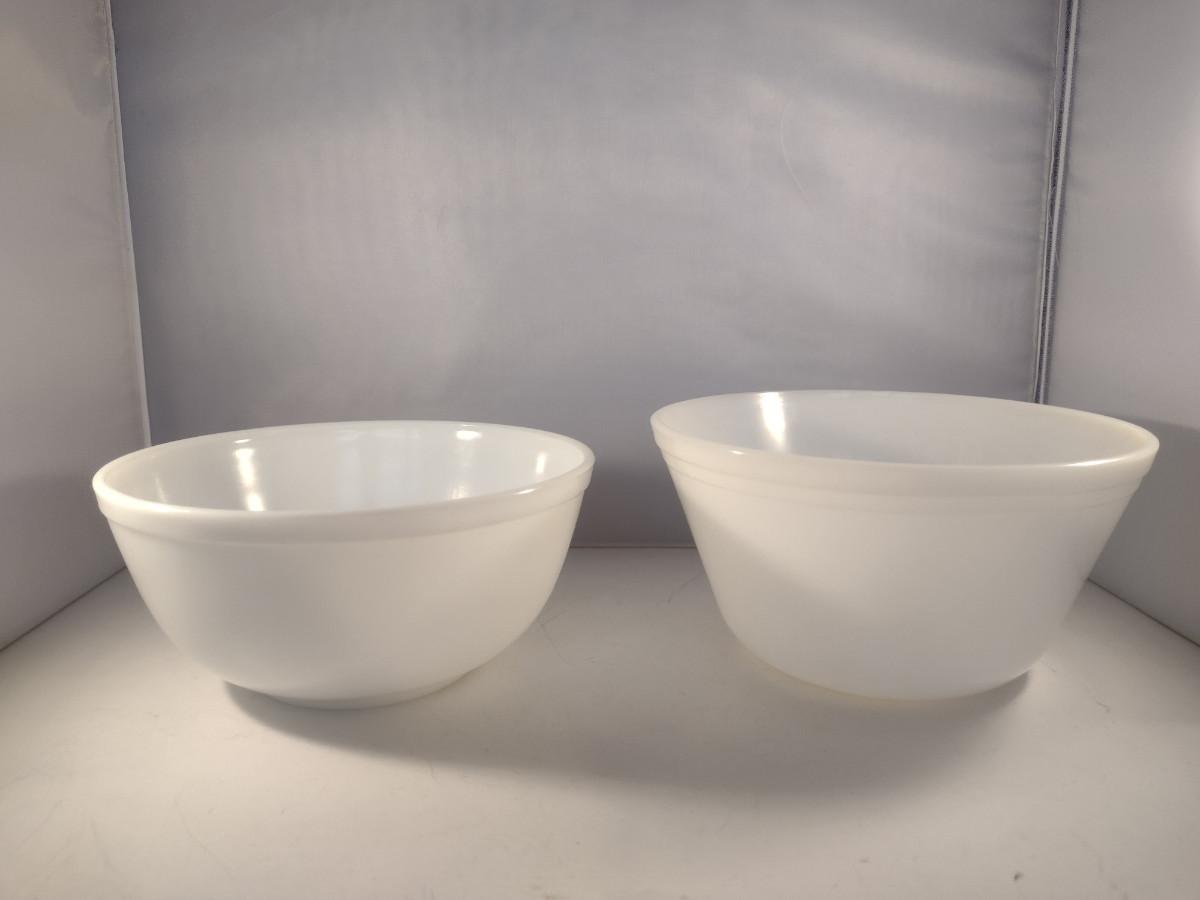 Pair of Milk Glass Mixing Bowls- One is Fire King