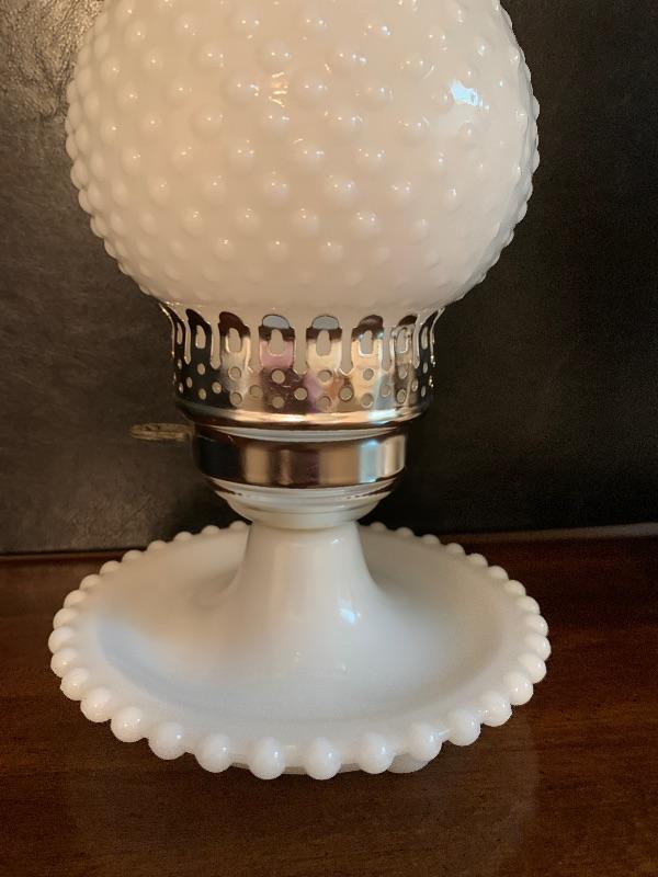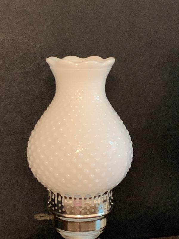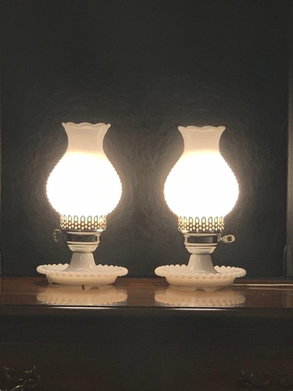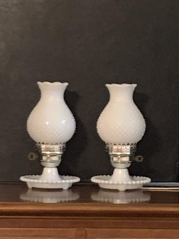 Pair of Milkglass Hobnail Hurricane  Lamps