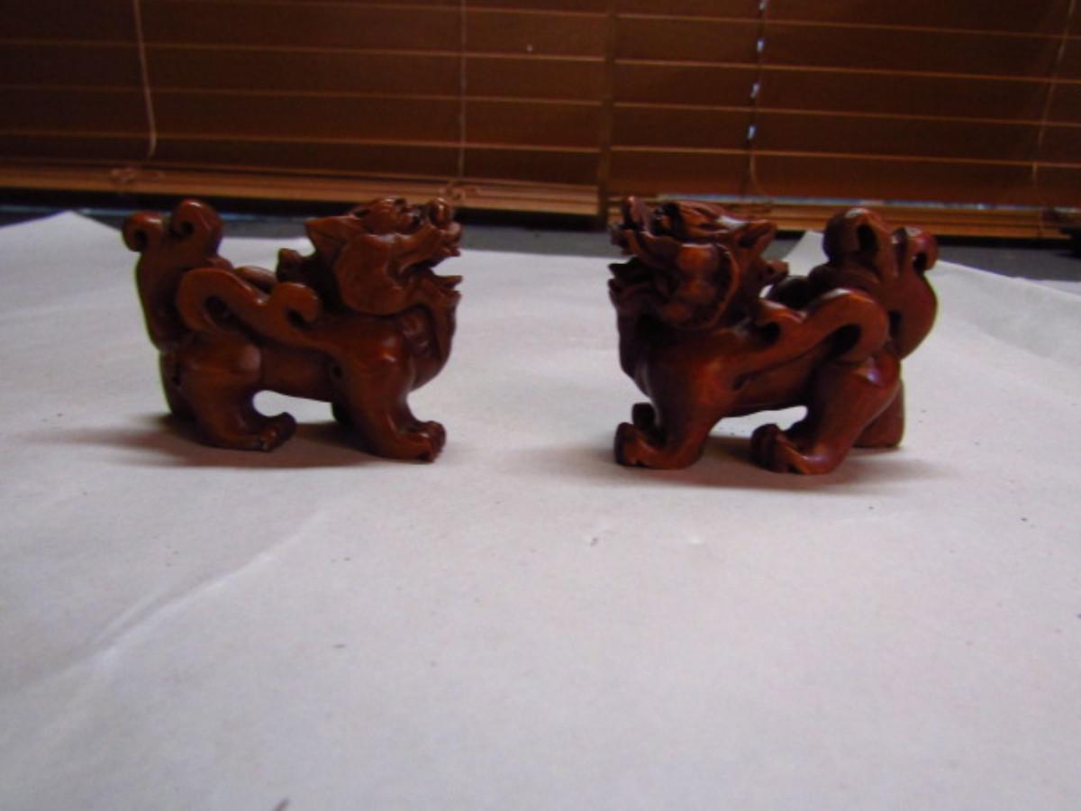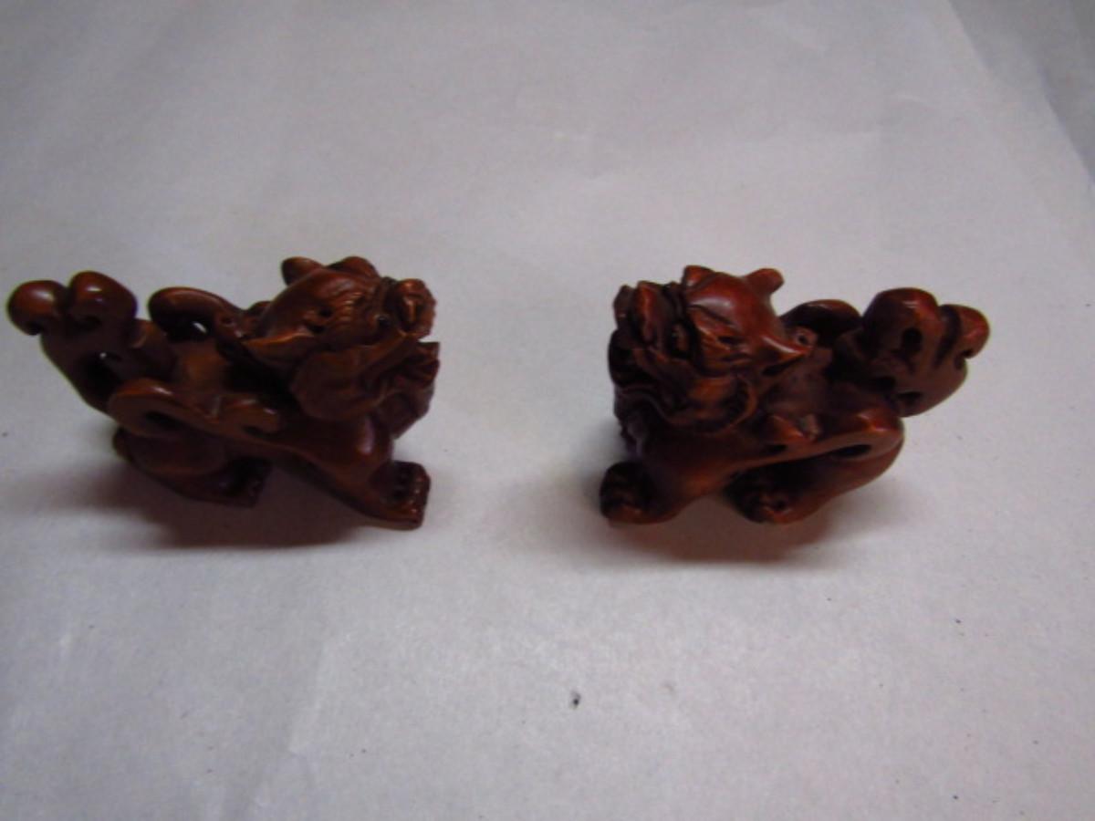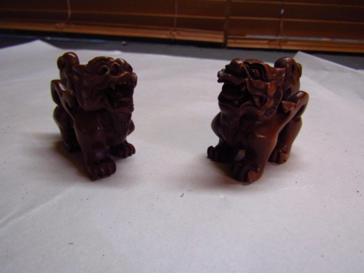 Pair of Miniature Chinese Guardian Lions- Foo Dogs (G). Measures approx 2 1/4" long, 1 3/4" tall.