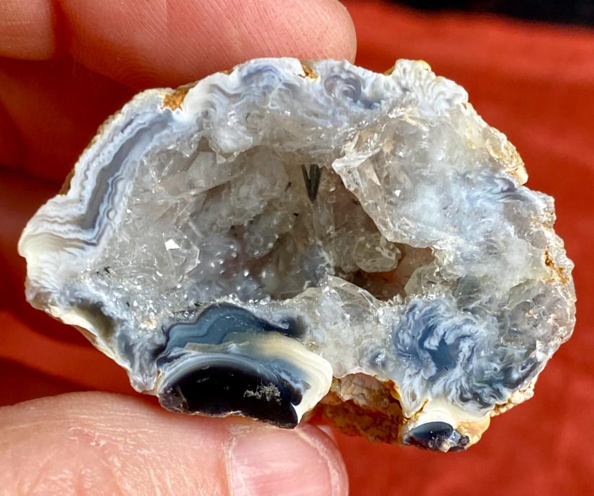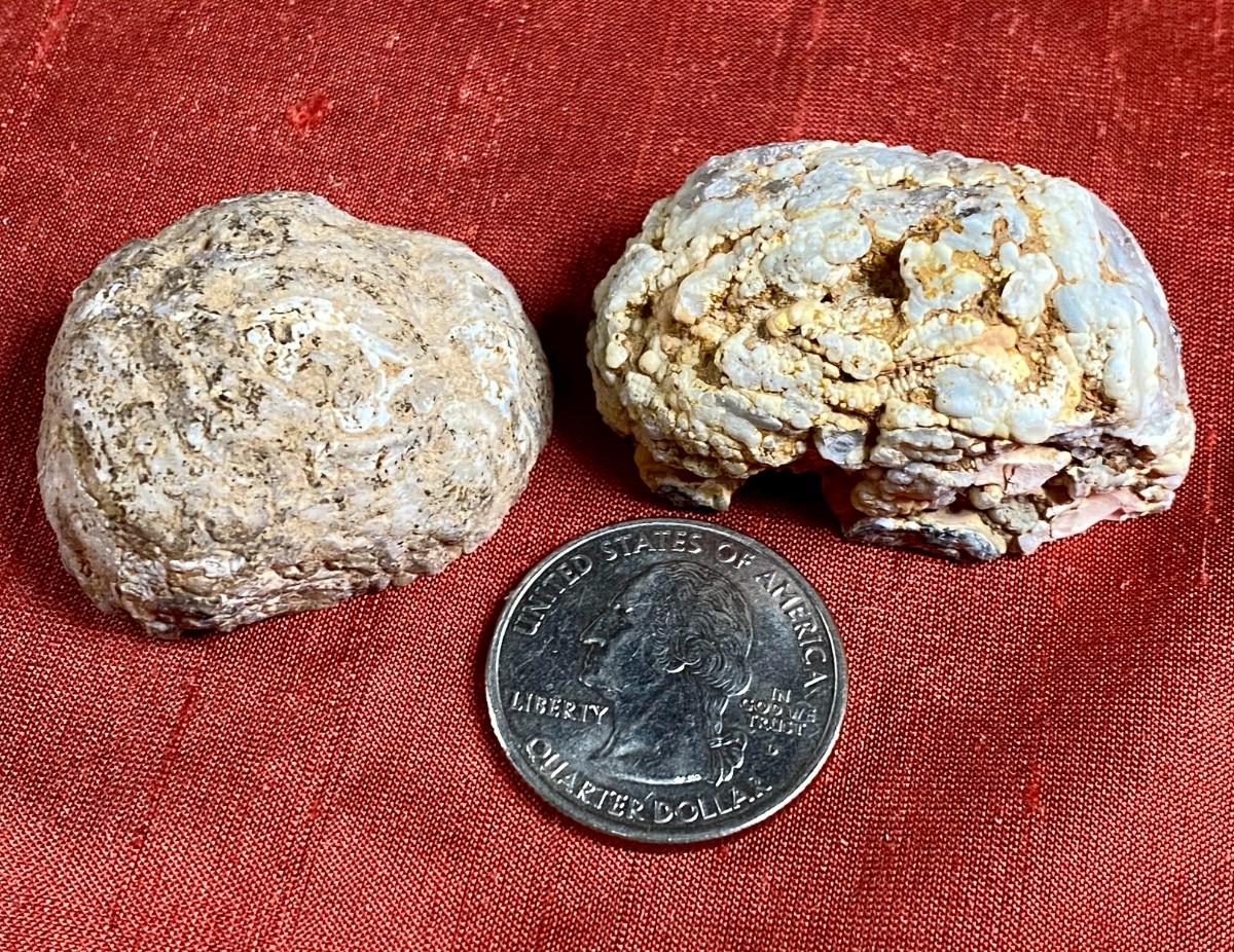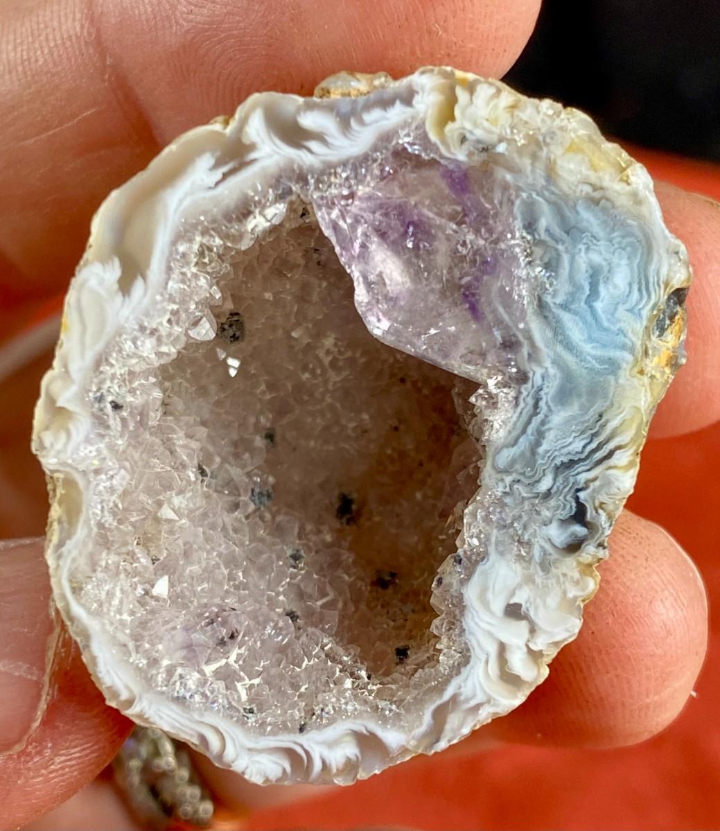 This auction lot is for a Pair of Miniature Geodes. Not sure of the stone/gem but nicely polished inner edges. Great for any miniature or rock collector. They are approximately 1-1/2 inches wide. Would look great on any shelve or bookcase.