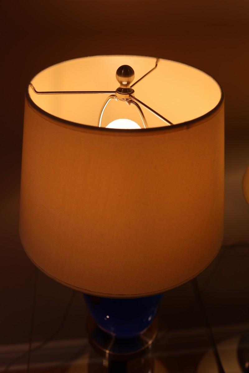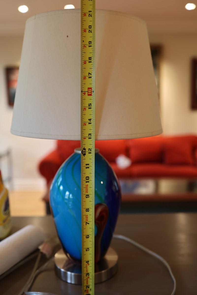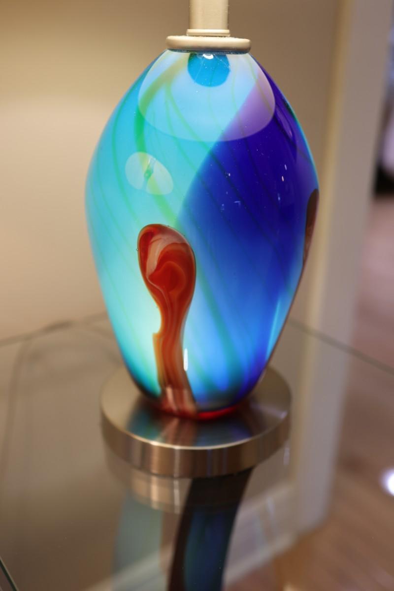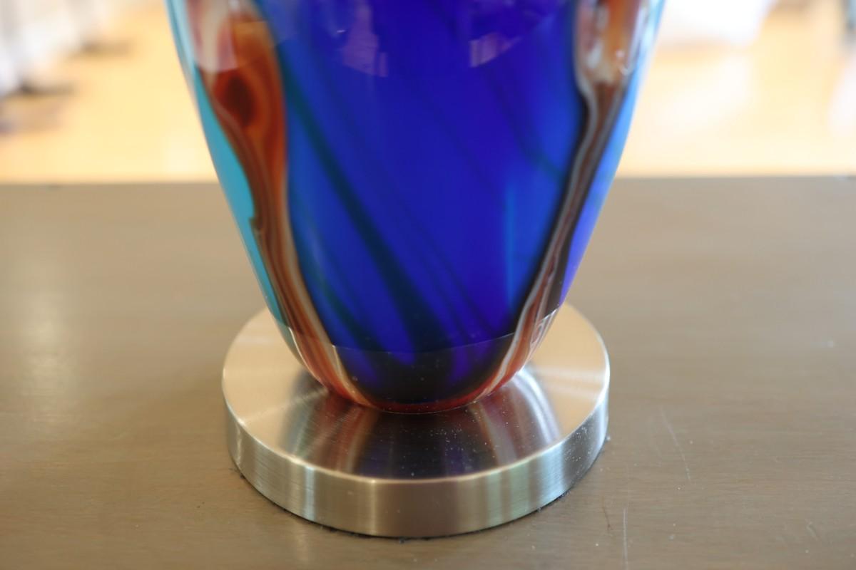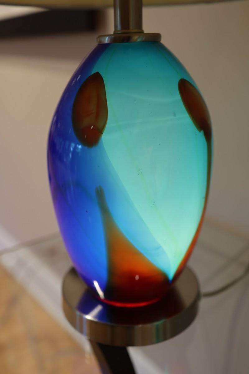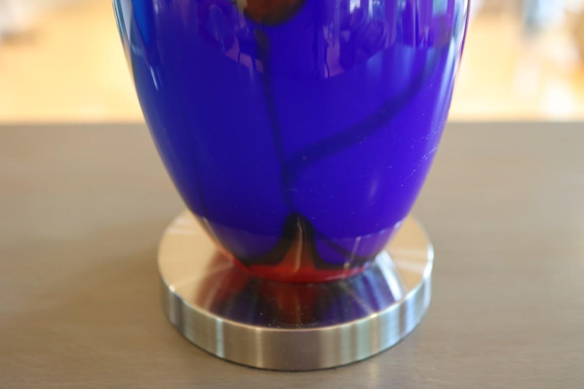 Pair of Art Glass Table Lamps with Internal Lights – Blue and Amber Swirl