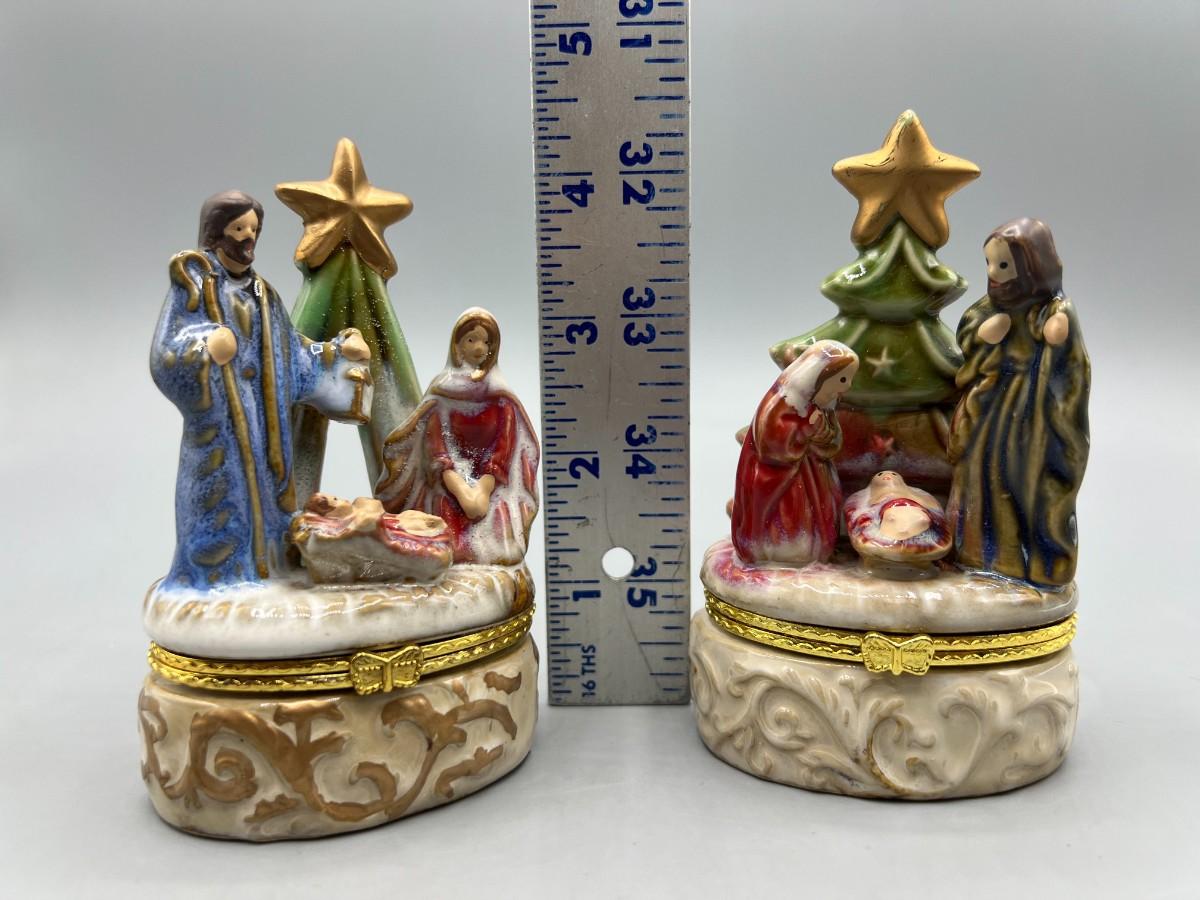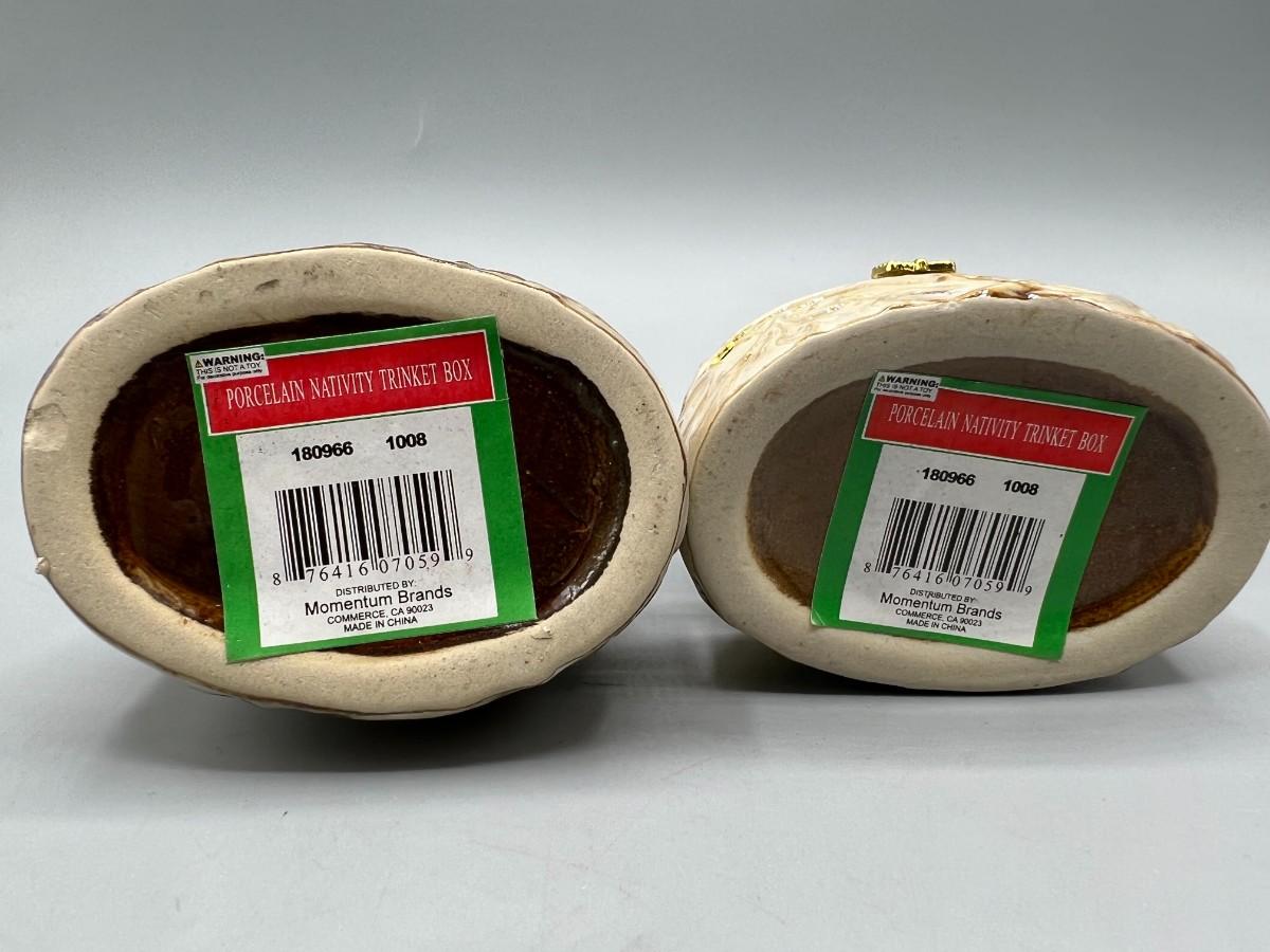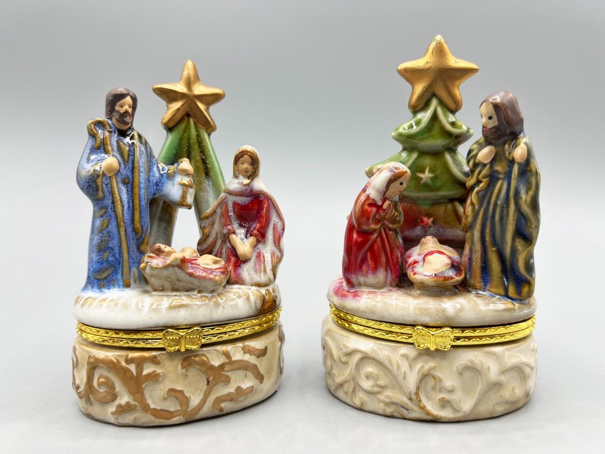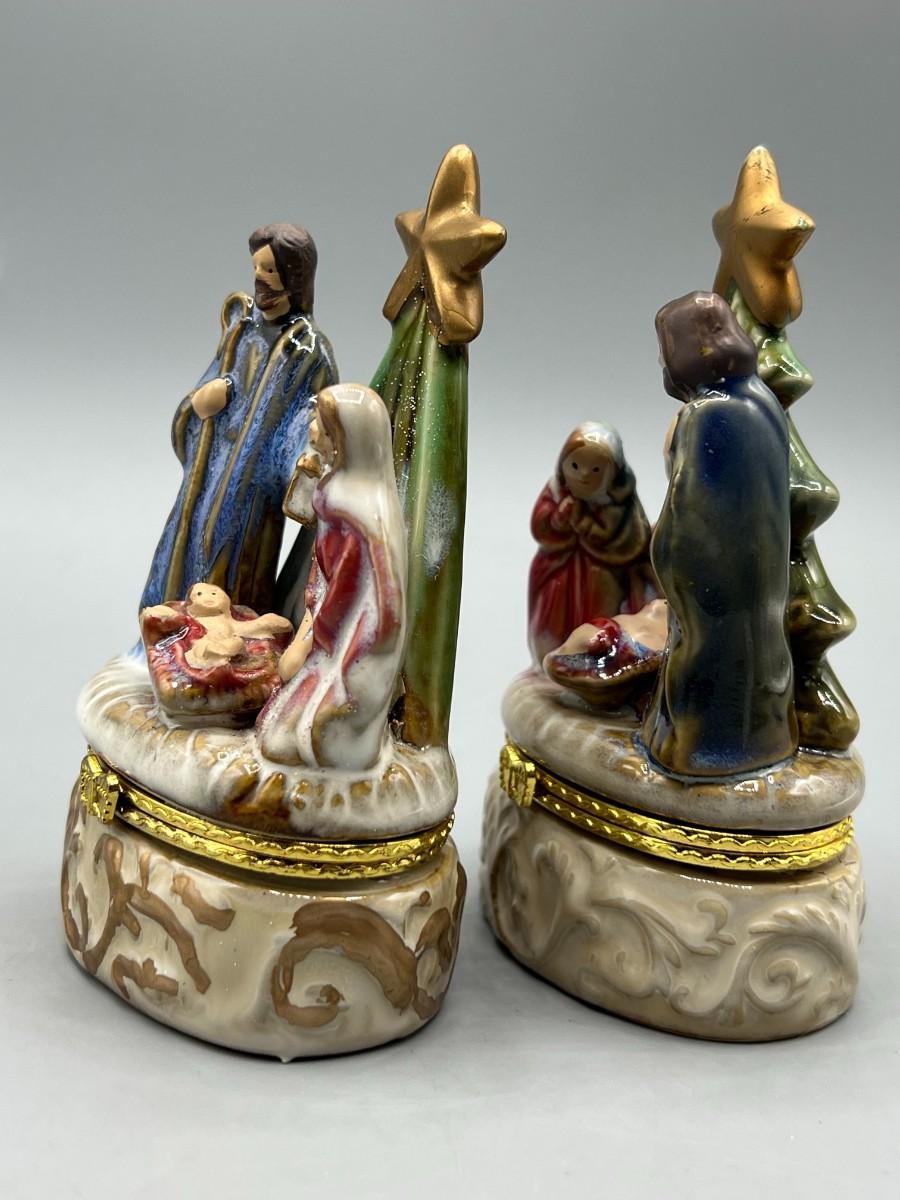 Pair of Momentum Brands Porcelain Christmas Religious Nativity Trinket Boxes
