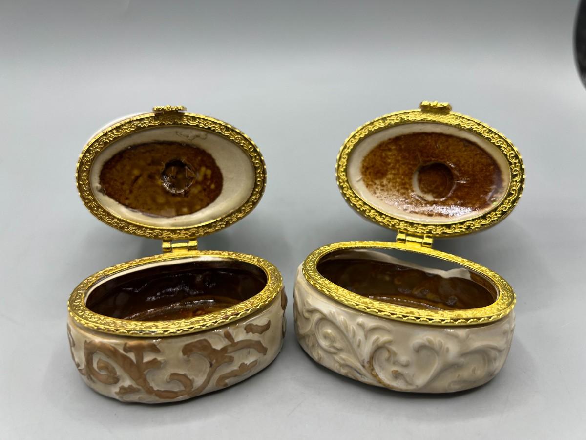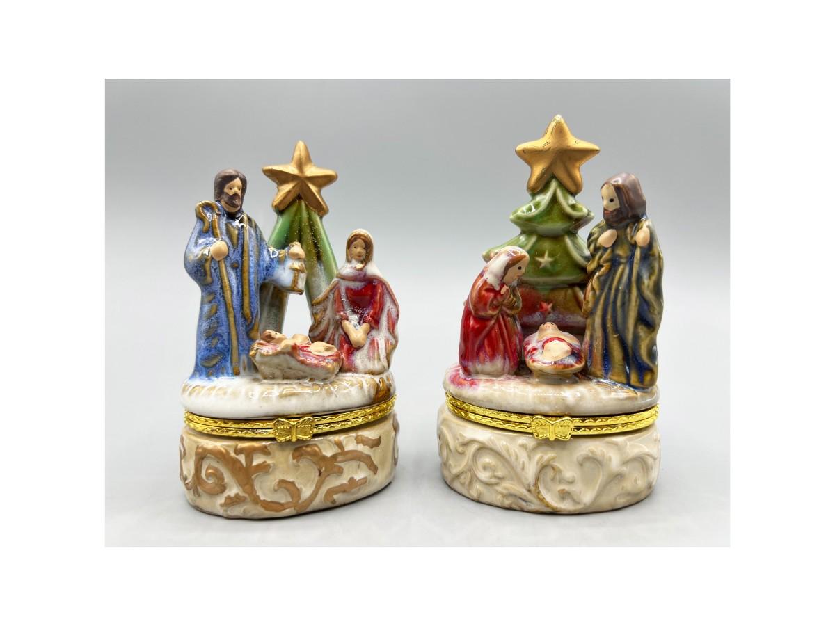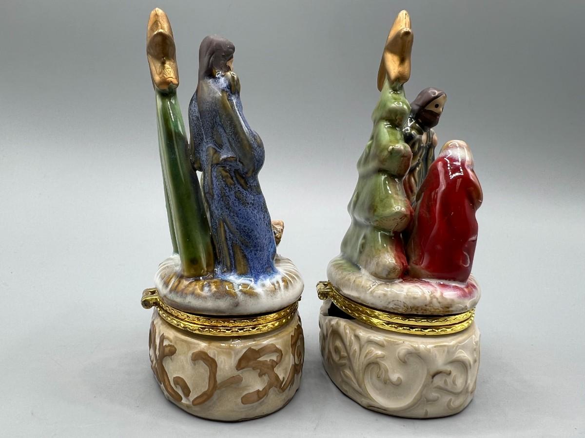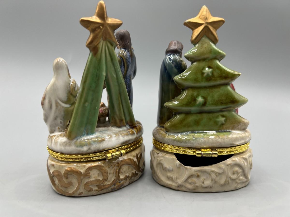 Pair of Momentum Brands Porcelain Christmas Religious Nativity Trinket Boxes