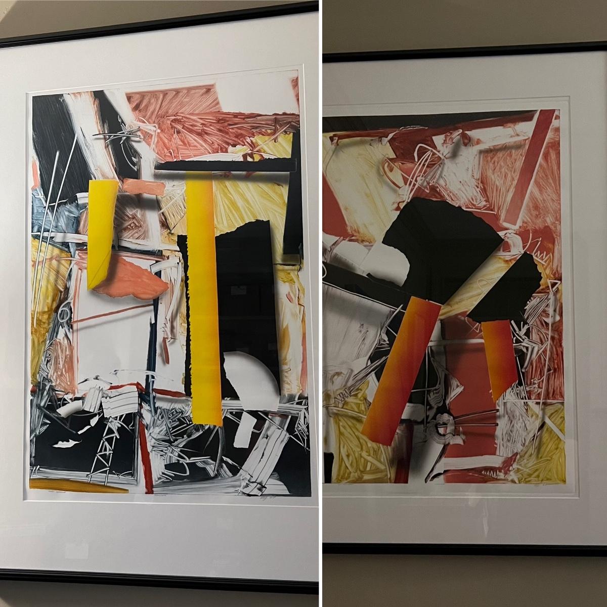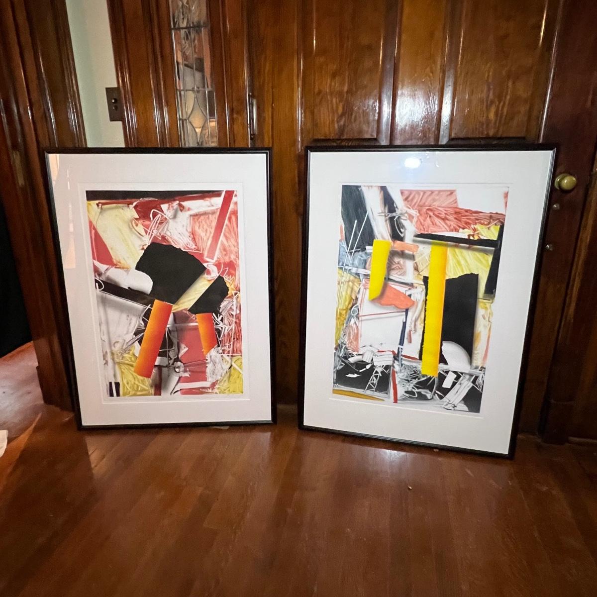 These two large prints are both under glass and in matching black composite resin type frames. Matching pencil signatures possibly reads ‘Ray’, see images.