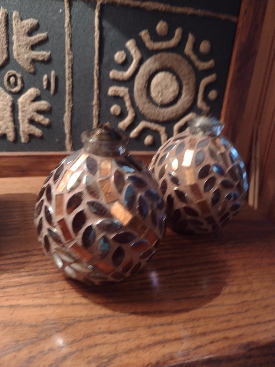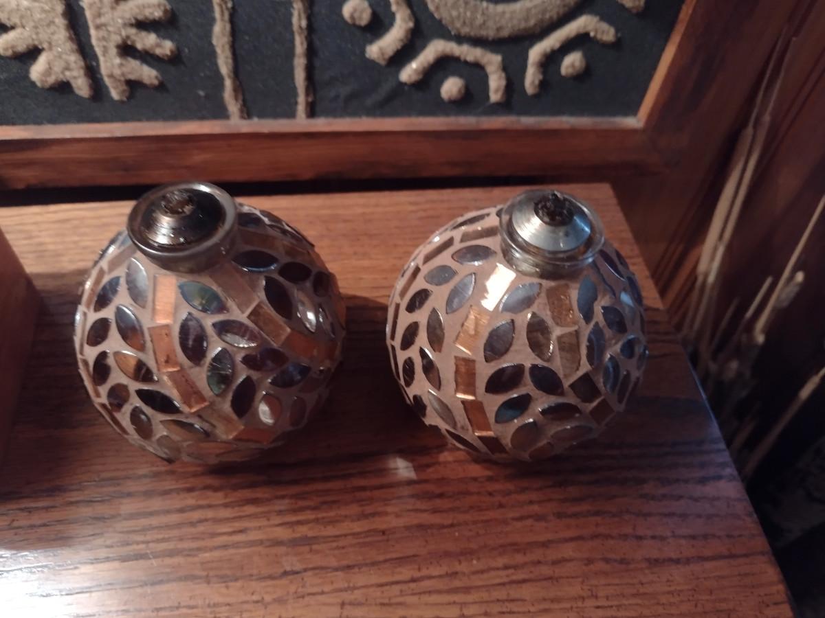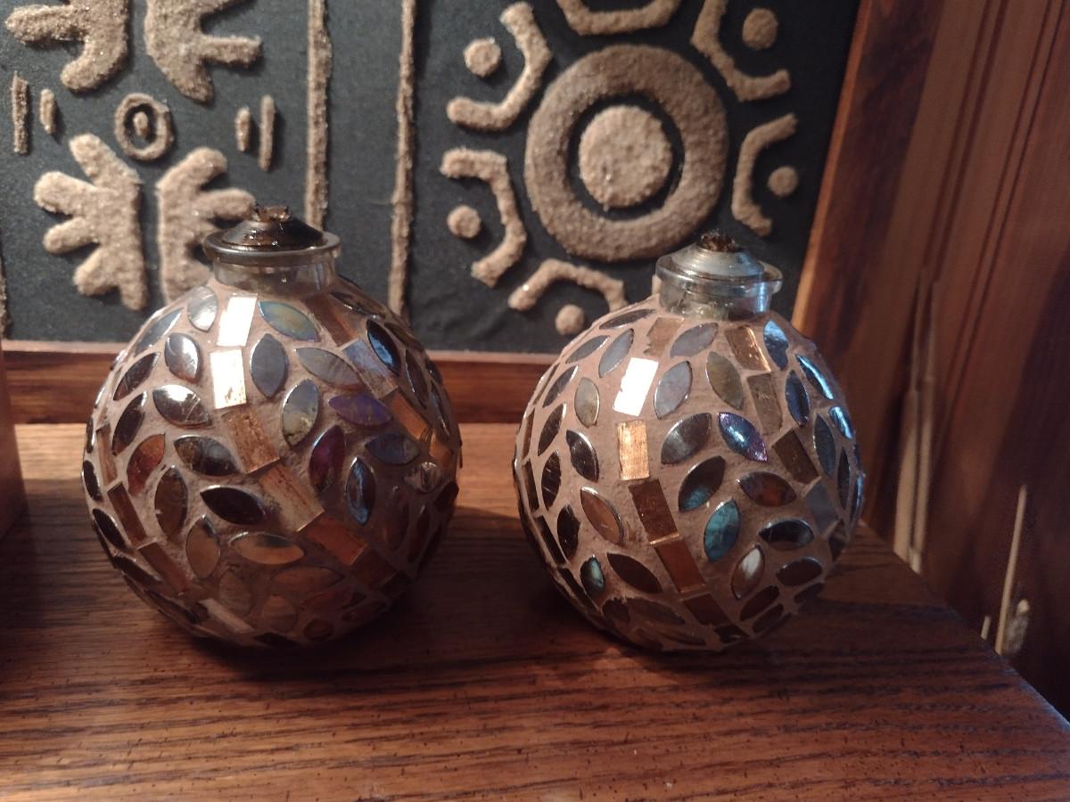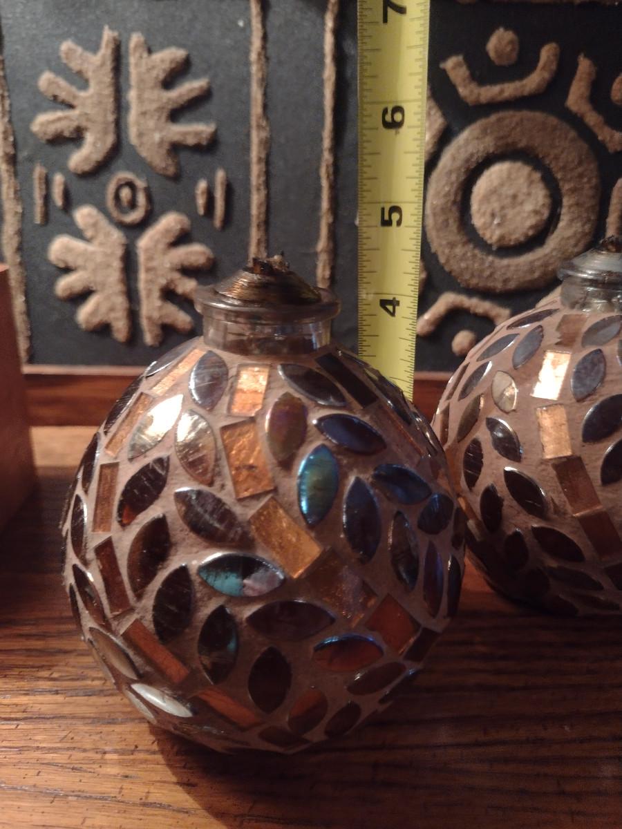 Pair of Mosaic Design Oil Lamps. Approx 4 1/2" tall.