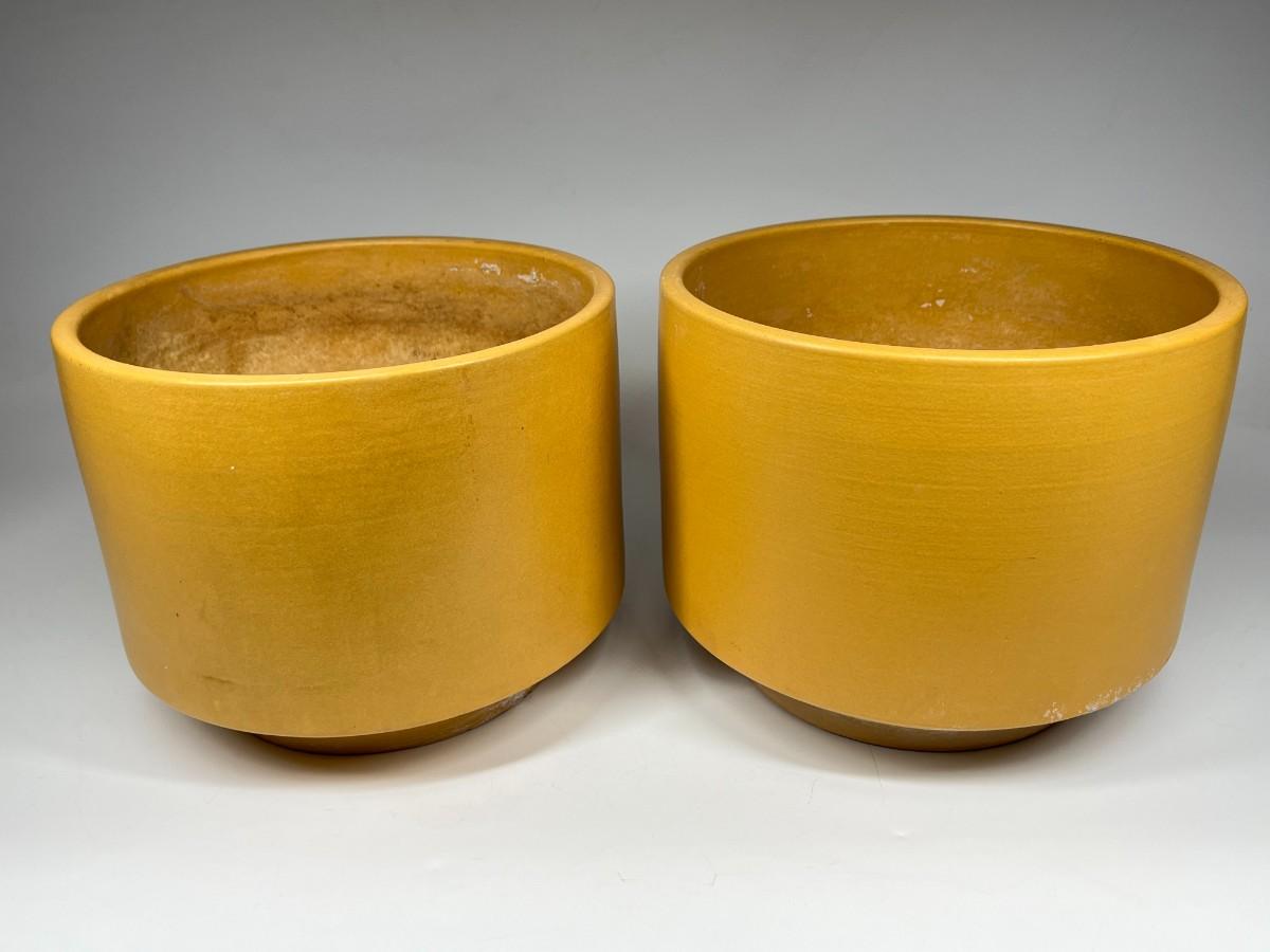 Pair of Mustard Yellow Gainey Ceramics La Verne 8" Planter Pots MCM Midcentury Pottery