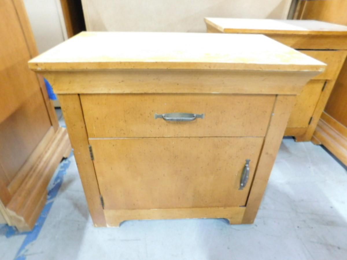 Pair of Natural Wood Finish Rustic Design Side Table by American of Martinsville Set of 2 Bidder is buying 2 units. Buying as is condition. May need touching up or minor repairs due to scratches, chips, delamination, or scuffed trim or edges. Expect some wear or scratches to the finish. Shipping option available via freight or local mover at Buyer's expense. Buyer must have all shipping scheduled within the stated dates and times of pickup. Recommended local mover is Beaty Bros. Moving 828-201-2982