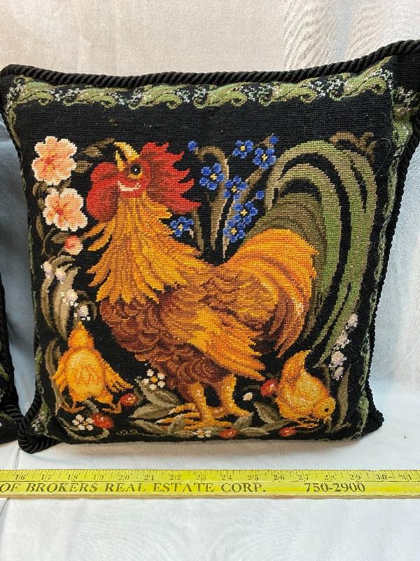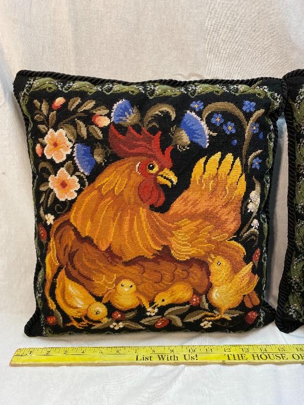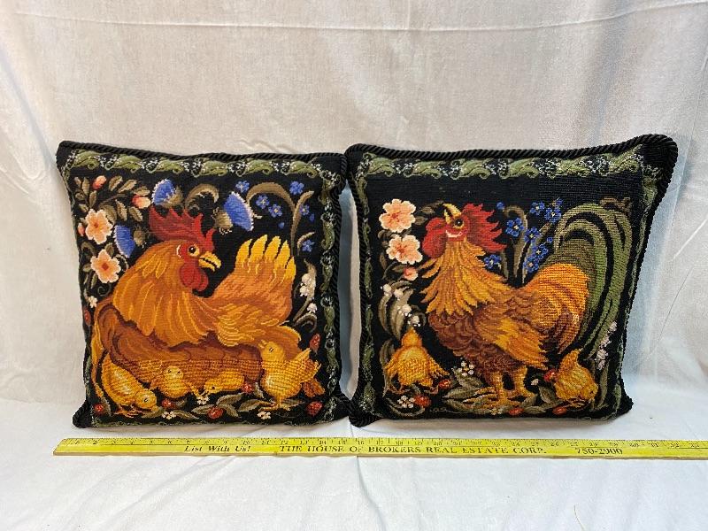 Pair of Needle Point Farmhouse Hen & Rooster Throw Pillows  YD#020-1220-03001