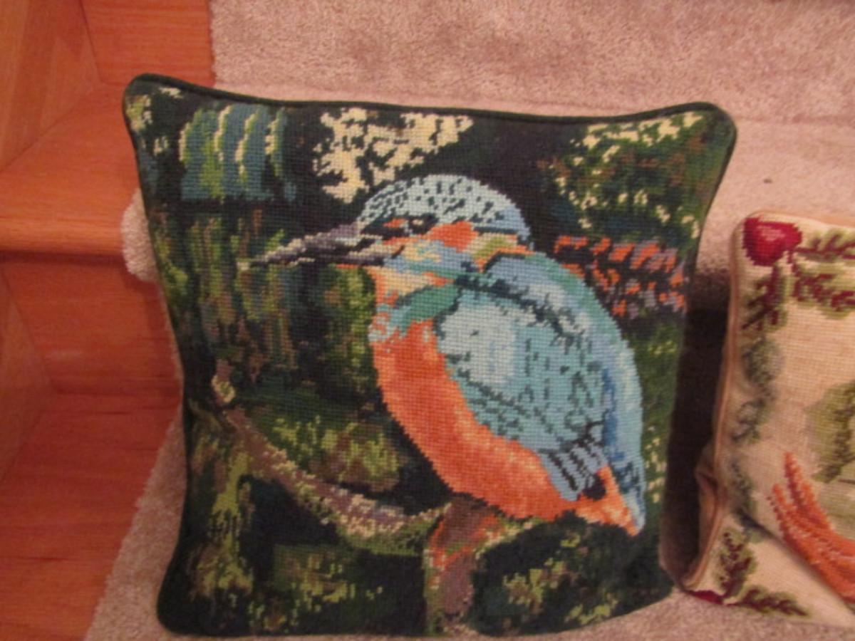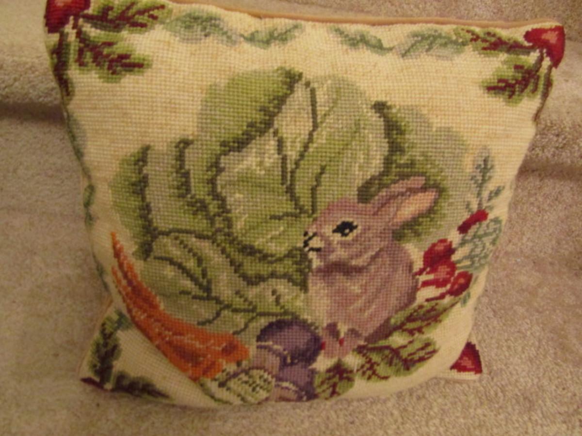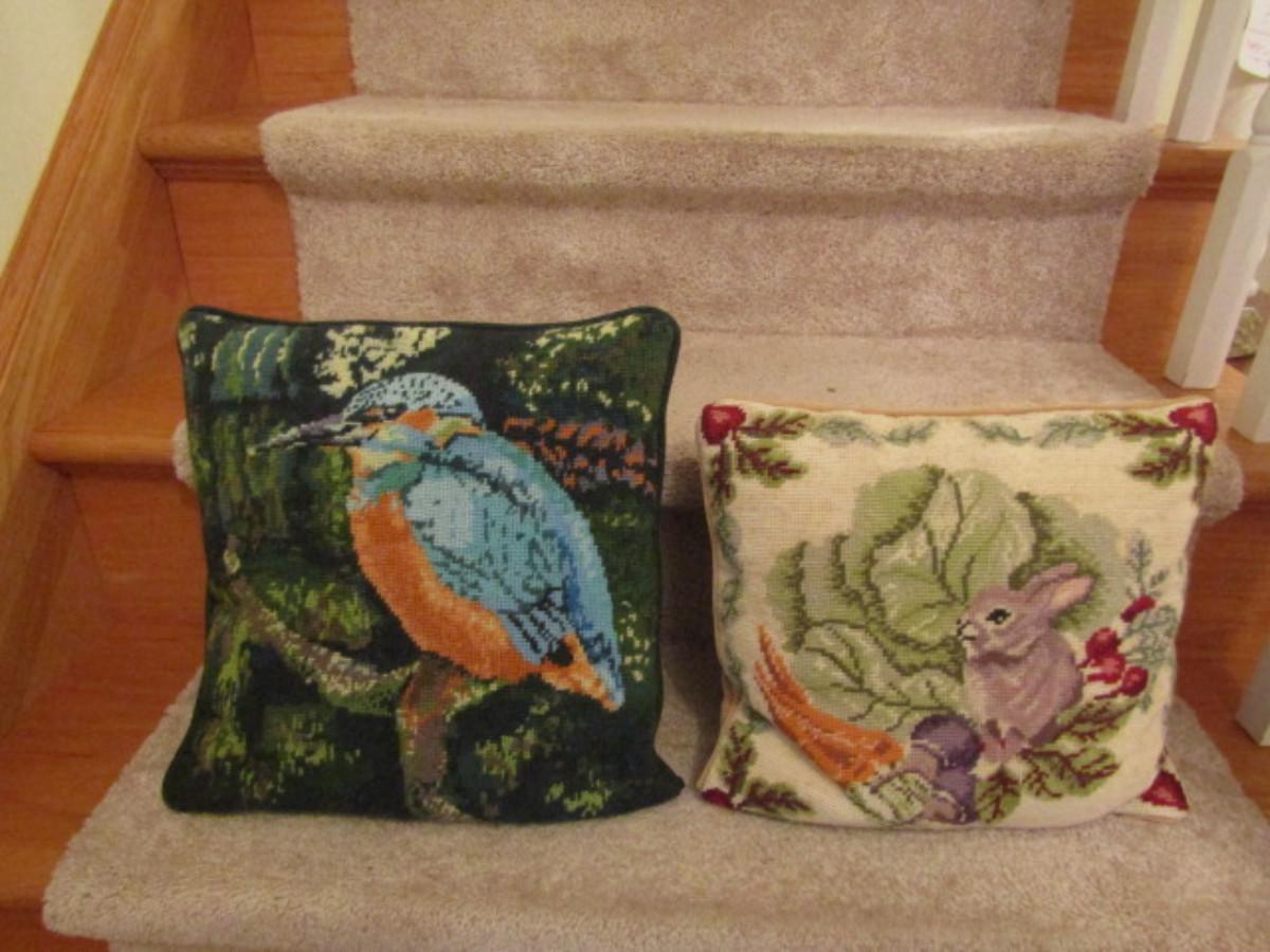 Pair of Needlework Decorative Pillows- Bird and Rabbit Designs