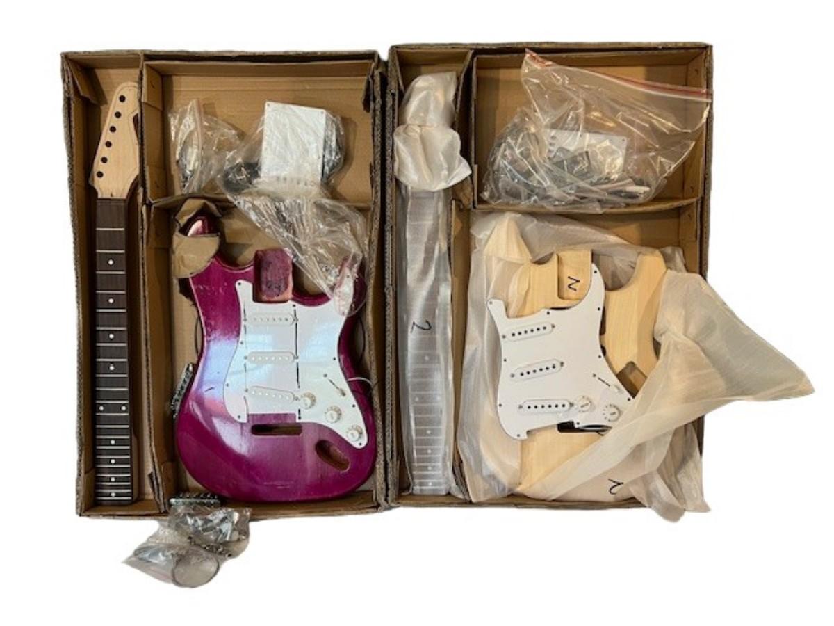 Includes everything needed to assemble two guitars. Shipping dimensions: 28" x 8" x 20".