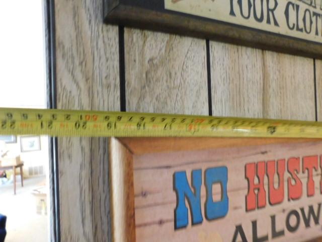 Pair of Novelty Signs for Man Cave Wood Framed some separation on frame as shown