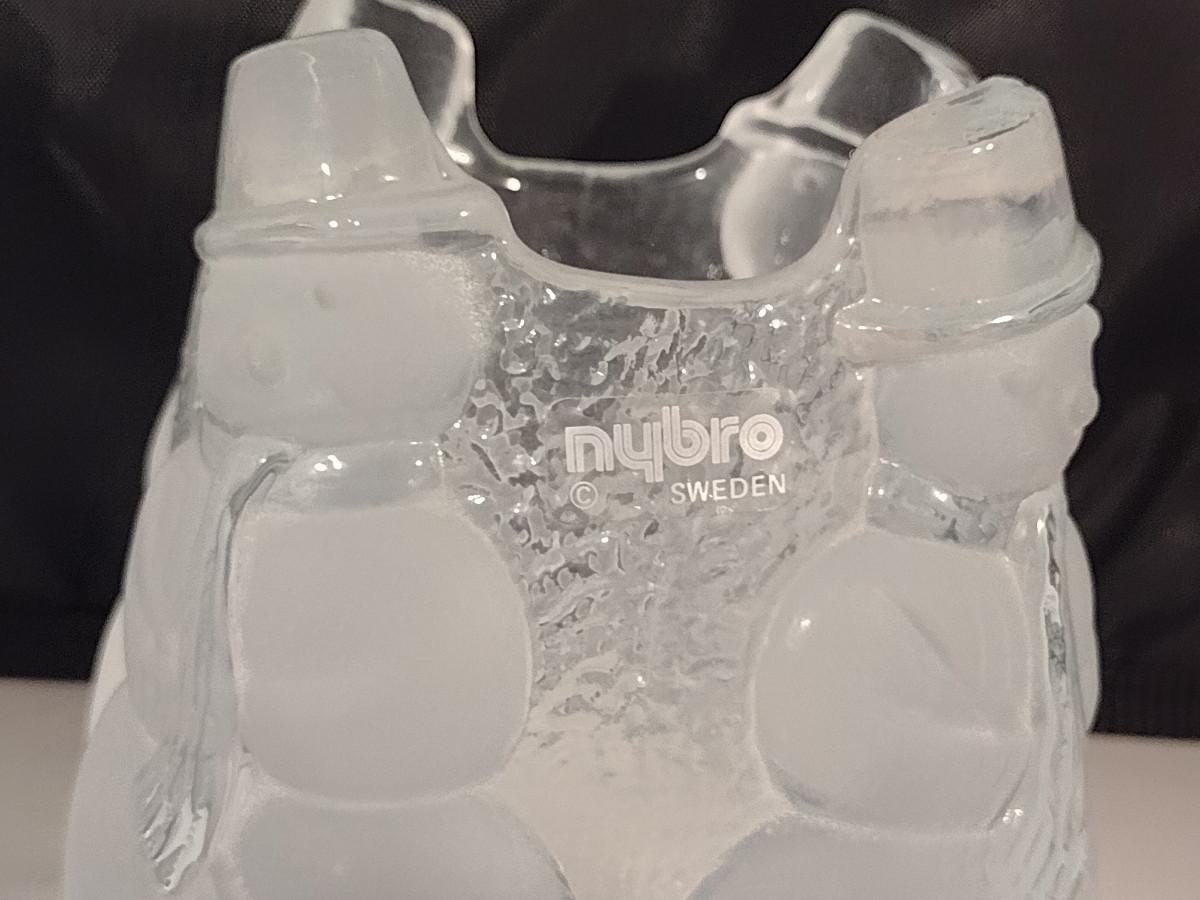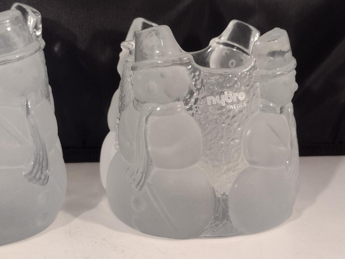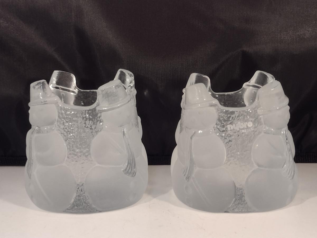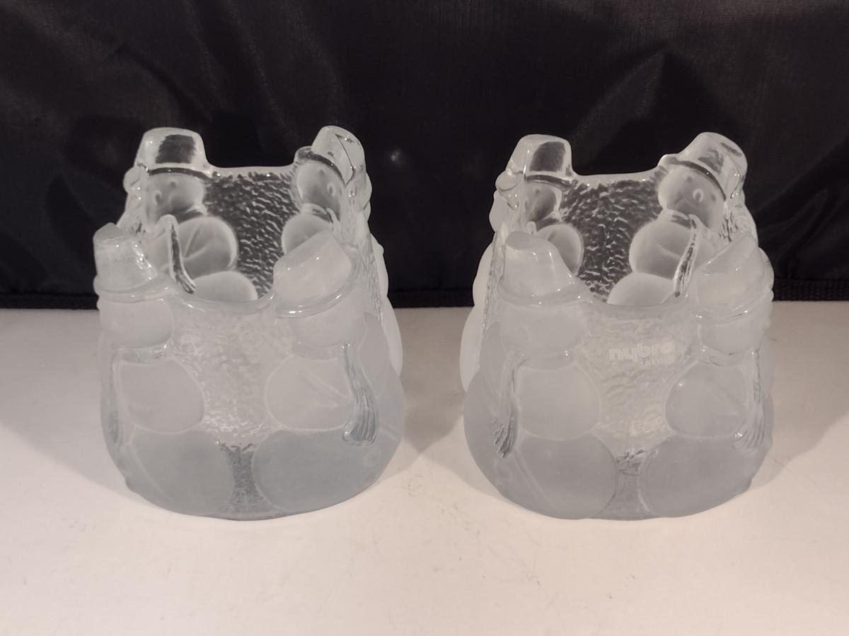 Pair of Nybro Sweden Heavy Frosted Glass Snowman Design Candle Holders