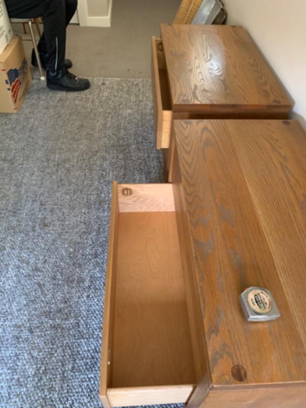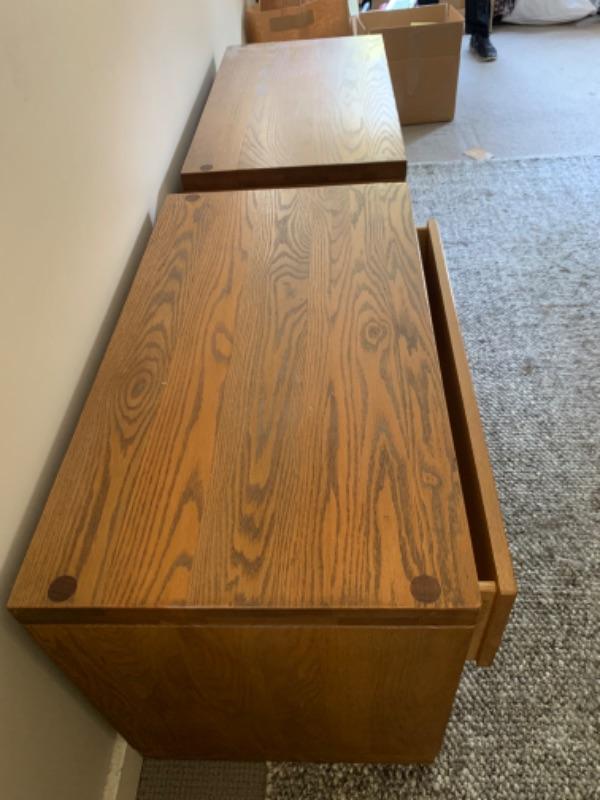 Pair of oak drawer chests by Conant (33”x18x21”)